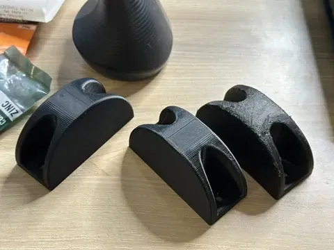 Cái này thiết kế để bắt vít vô đáy vali bằng ốc #10-32 dài ¾". Tui đề xuất xài đai ốc tự khóa bằng nylon thay cho long đền răng cưa mà vali cũ có sẵn. Như vậy thì siết ốc mà không làm cái chân đế bị ép quá, tránh bị gãy ở đường lớp in. (Hỏi tui sao biết nha.)