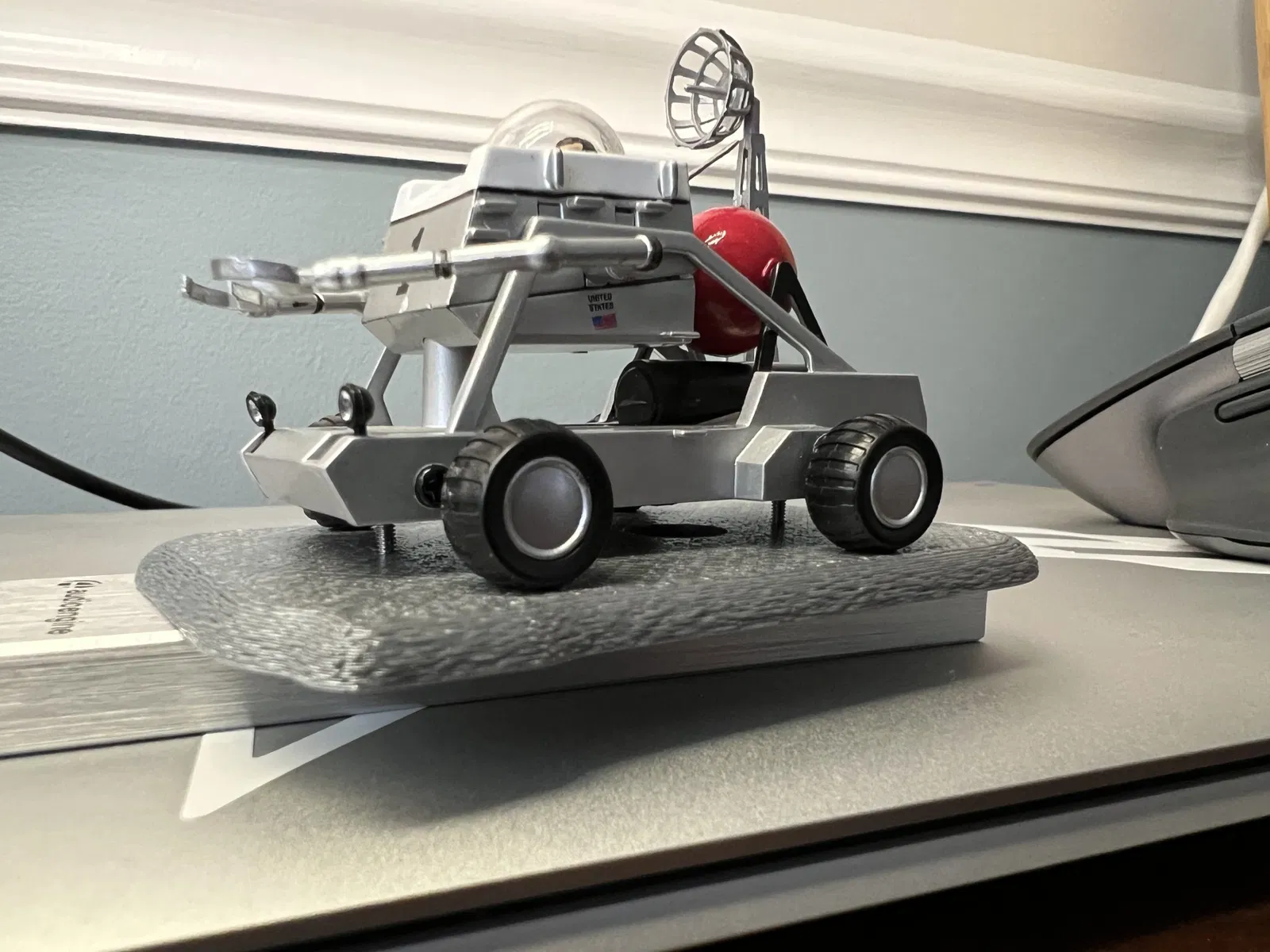 Một đế đơn giản mình đã thiết kế để dễ dàng gắn chiếc Eaglemoss Moon Buggy tỉ lệ 1:43 vào bộ phận chuyển hướng trên của máy Bond.
