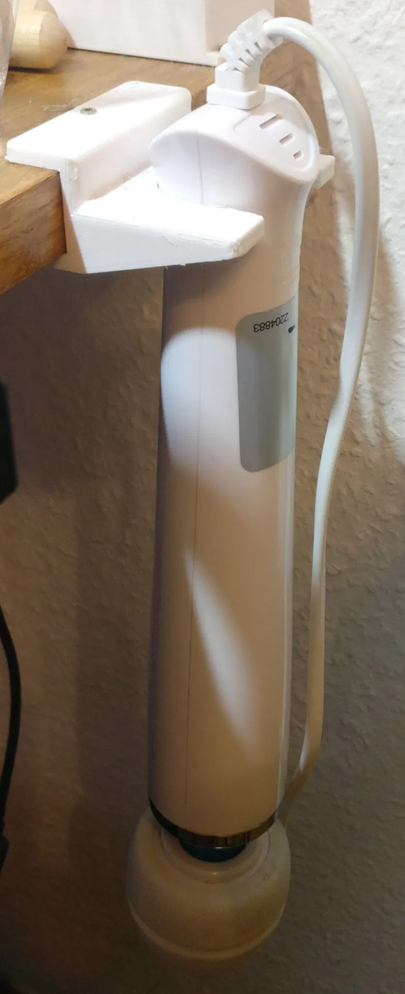 Treo cây đũa thần Europe Magic wand theo chiều dọc vào cạnh bàn dày 19mm. Đã có file STEP để tùy chỉnh. Cần dùng vít gỗ để cố định, tránh trượt. Có thể chỉnh sửa lại thành kiểu kẹp.