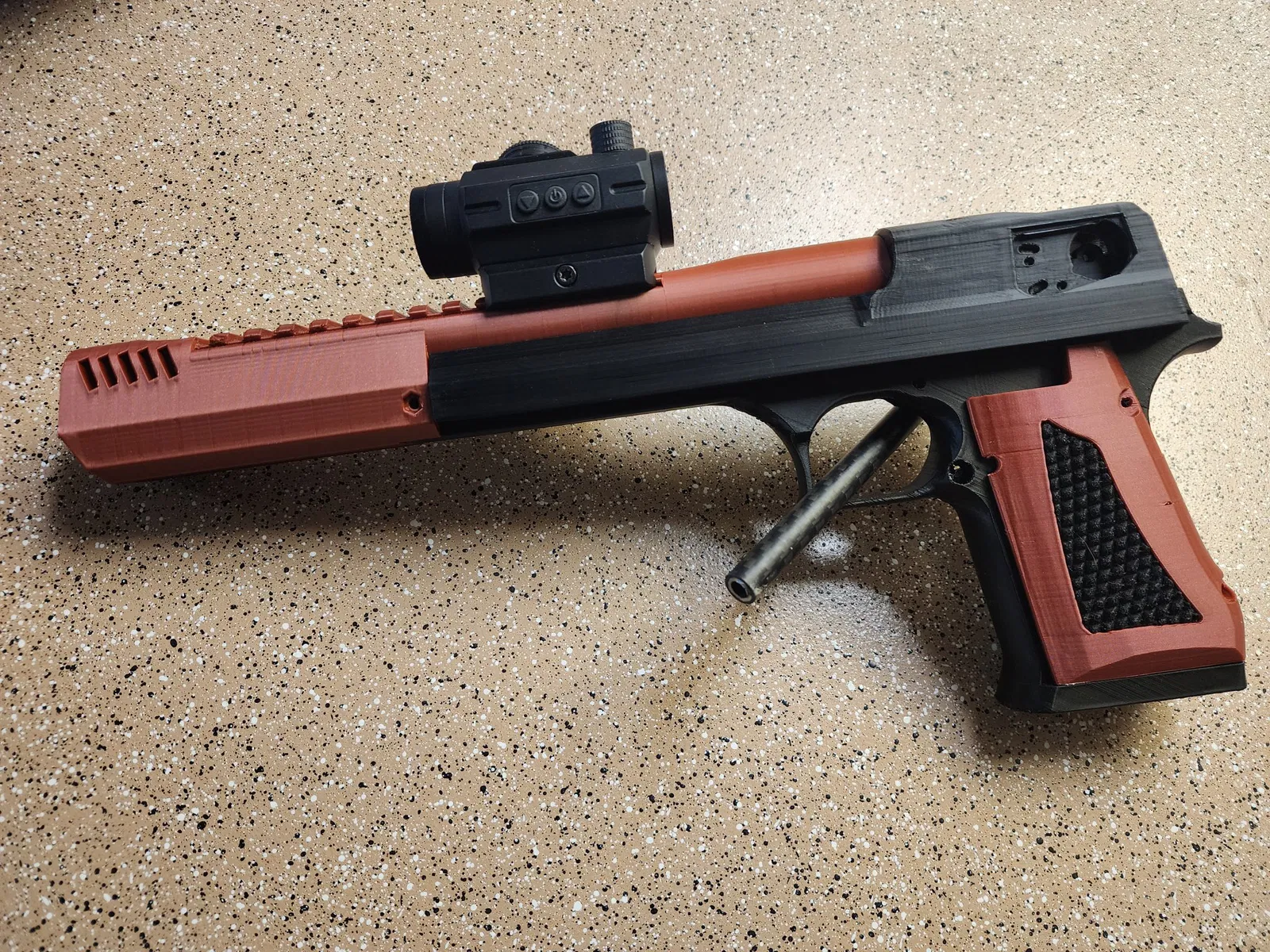 Tay cầm này dành cho mẫu 'Beach Pigeon' của u/ezafs, một mẫu súng Desert Eagle. Tay cầm in ra làm 2 mảnh, cho phép in đa màu và đa vật liệu. Có kèm theo miếng chèn tùy chỉnh.