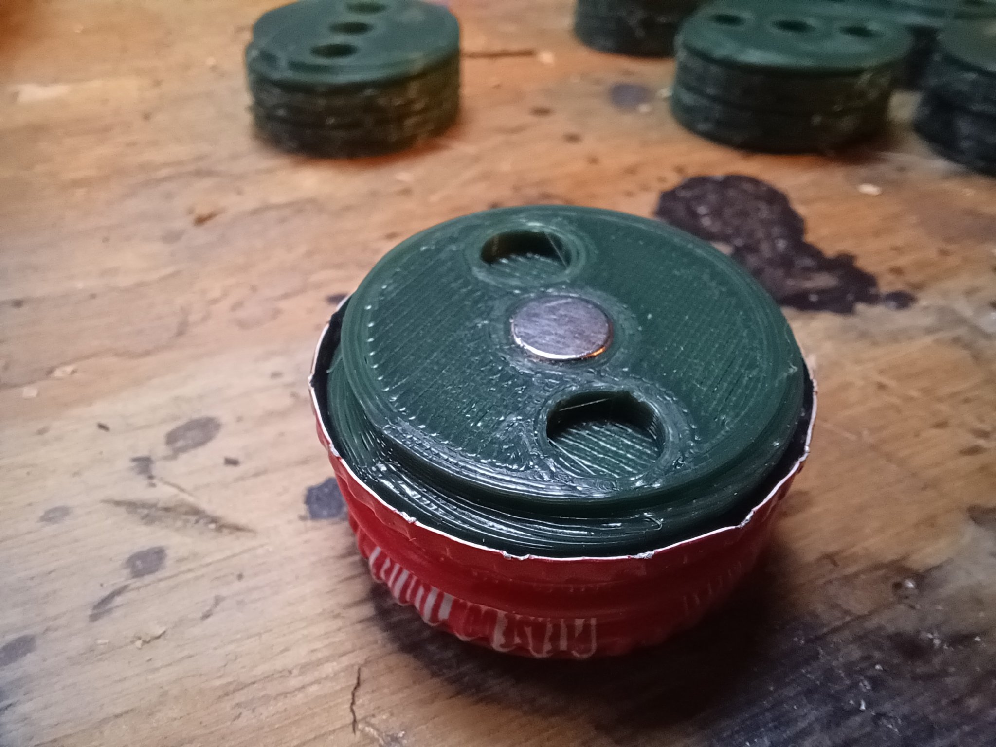 Cái đế vặn vô cho nắp lon nước ngọt bằng kim loại đời cũ (cuối thập niên 80) để bạn trưng bày trên tủ lạnh hay các vật dụng kim loại khác. Có 3 lỗ gắn nam châm, có thể siết chặt đế vô nắp lon bằng kềm mũi nhọn. In bằng PLA, độ đặc ruột 10%, có support. Cần nam châm 6mm x 2mm.