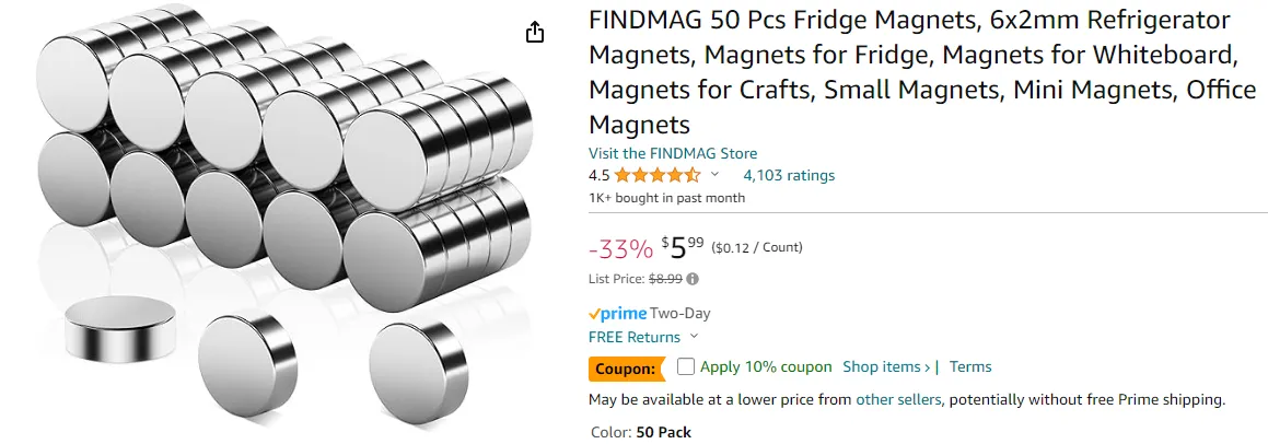 Cần nam châm kích thước 6mm x 2mm (kích thước thực tế 6mm x ~1.7mm), mã hàng Amazon là B079FLRQJP. (coi hình số 10).