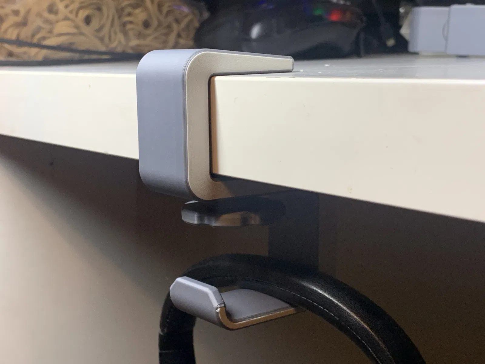 Kệ treo tai nghe gắn dưới bàn làm việc hoặc mặt bàn. Thiết kế kẹp vít thông minh, phù hợp với mặt bàn dày tới 36mm, giúp bạn treo tai nghe gọn gàng và tránh va chạm.