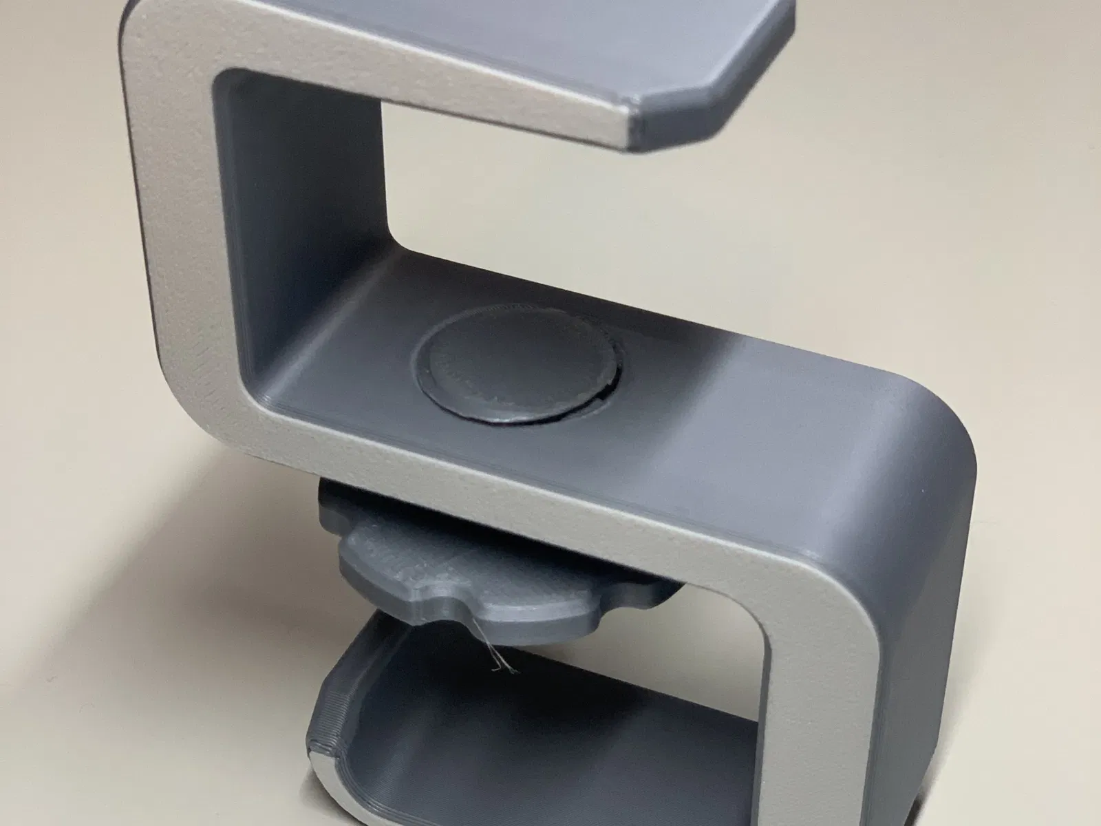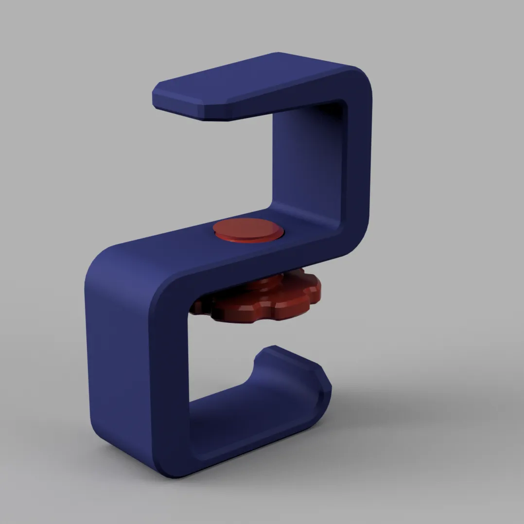 Cũng không có gì nhiều. Nó kẹp vào bàn hoặc mặt bàn dày tới 36mm. Lấy cảm hứng từ nhiều thiết kế khác. Tôi thích kiểu treo hình chữ "S" vì tôi sẽ không va vào nó nhưng tôi chưa thấy cái nào có vít khóa như những cái khác nên đây là phiên bản của tôi.