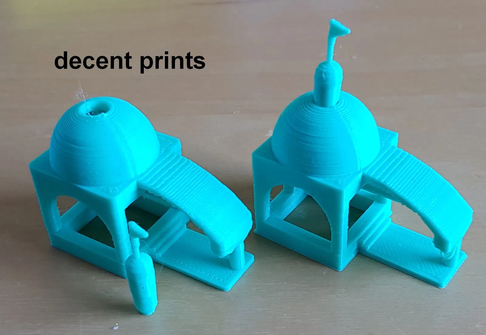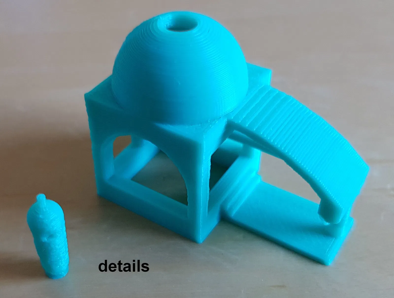 Đây là bản in hai phần, với phần “lồng đèn” của vòm được in bên trong như một bài kiểm tra khá khó về độ bám dính của bàn in. (Tui làm bài test này khó vì nó là nỗi ám ảnh của máy in 3D.) Nếu nó bong ra khỏi bàn in, điều này có thể xảy ra dễ dàng, thì đống lộn xộn đó sẽ được chứa bên trong bản in ngoài.