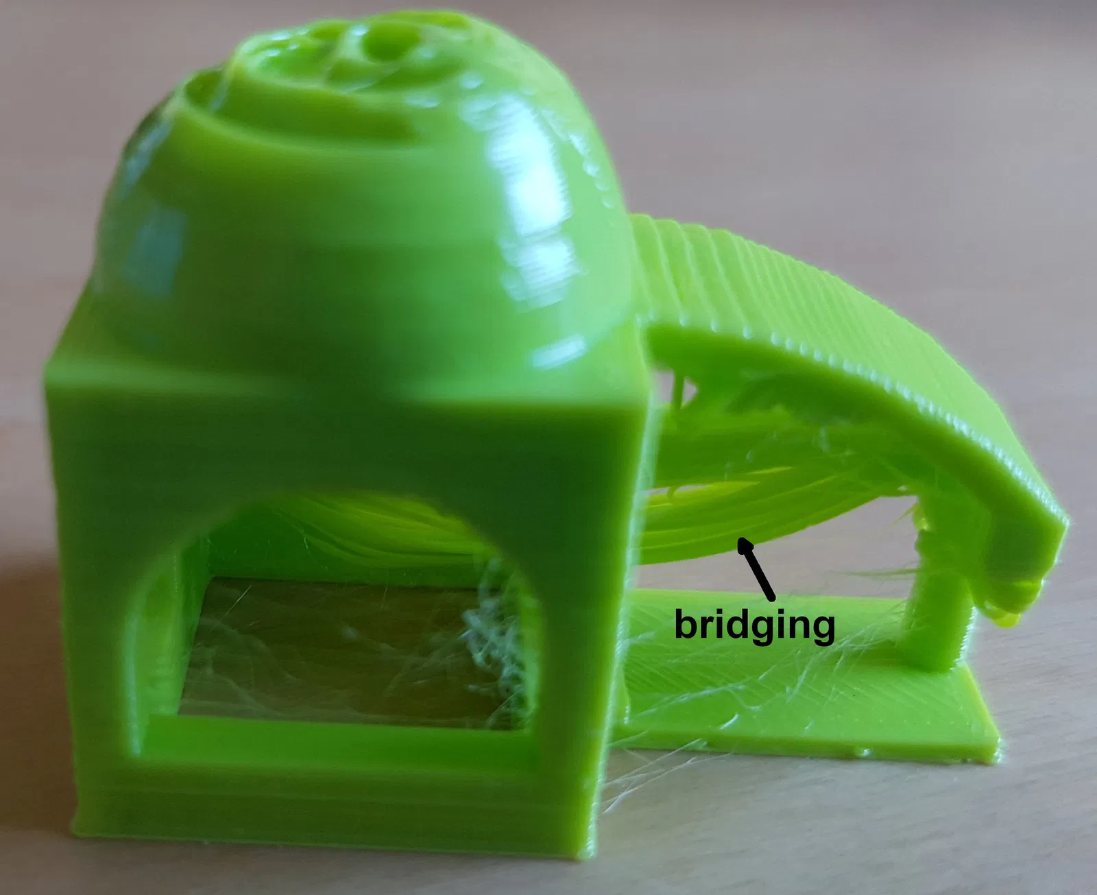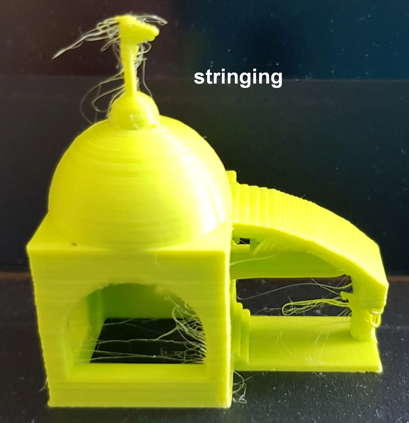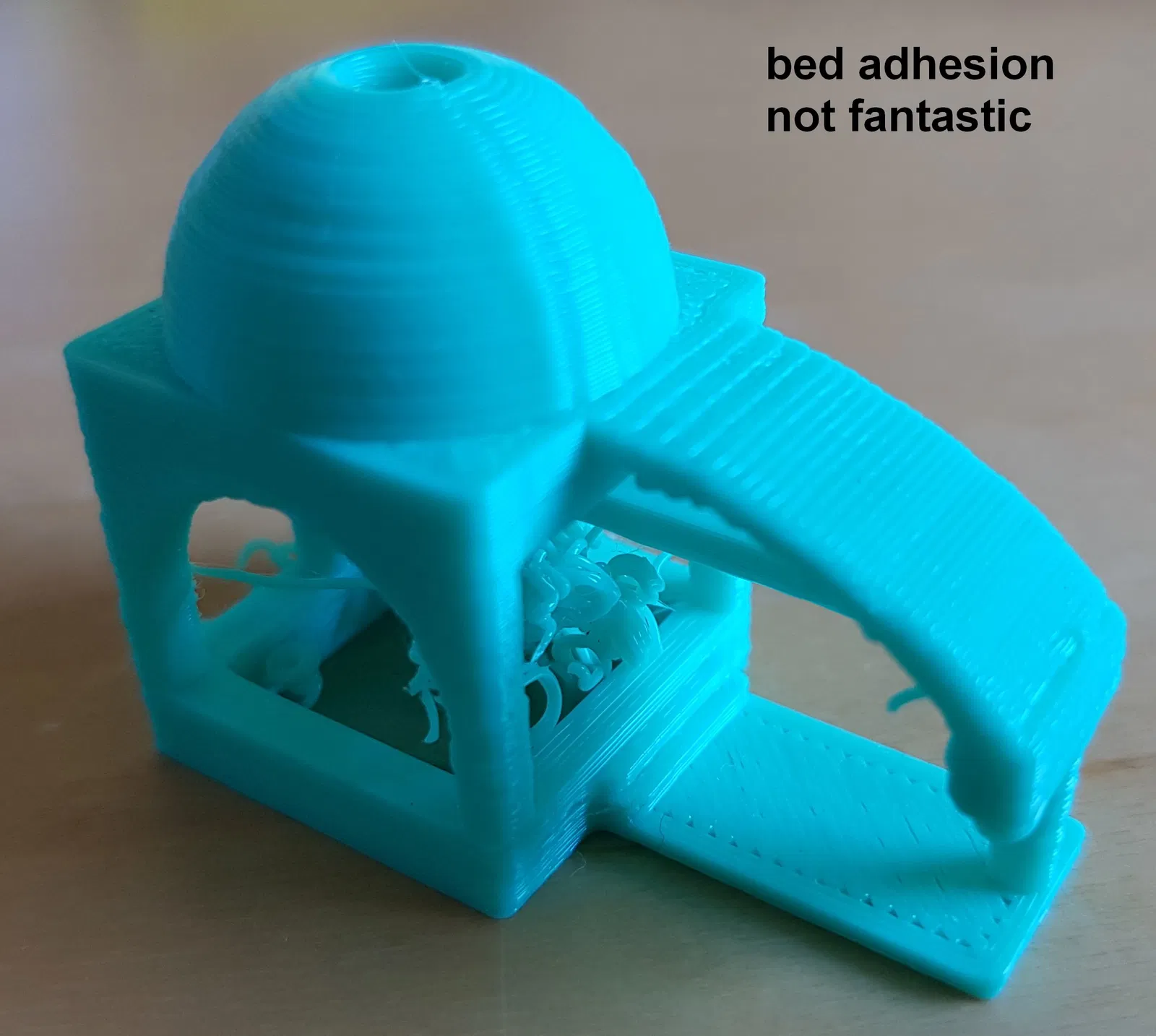 - “bed adhesion not fantastic” - Lồng đèn bị bong ra khỏi bàn in và tạo ra đống lộn xộn bên trong vòm. Cần lưu ý rằng điều này thường vẫn đủ độ bám dính cho hầu hết các bản in bình thường.
