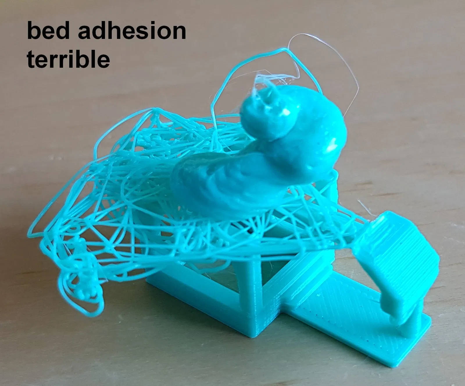 - “bed adhesion terrible” - Toàn bộ mô hình bị bong ra khỏi bàn in. Điều này cũng sẽ không hoạt động với hầu hết các bản in khác.