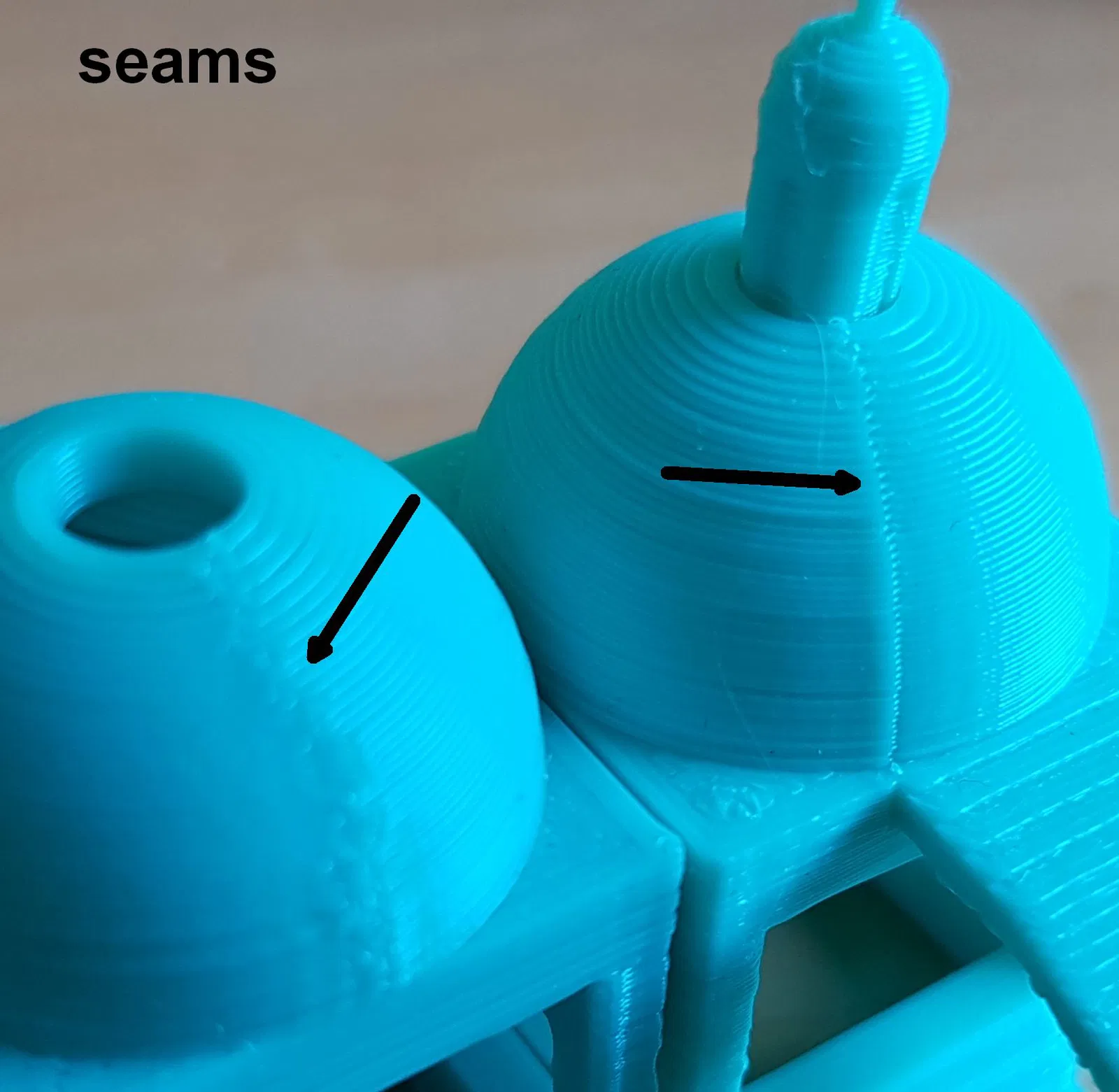 - “seams” - Đây là nơi máy in của bạn thay đổi lớp. Bạn sẽ luôn thấy một cái gì đó, nhưng các slicer khác nhau xử lý nó theo những cách khác nhau. Kiểm tra cài đặt slicer của bạn và tìm cái bạn thích nhất.