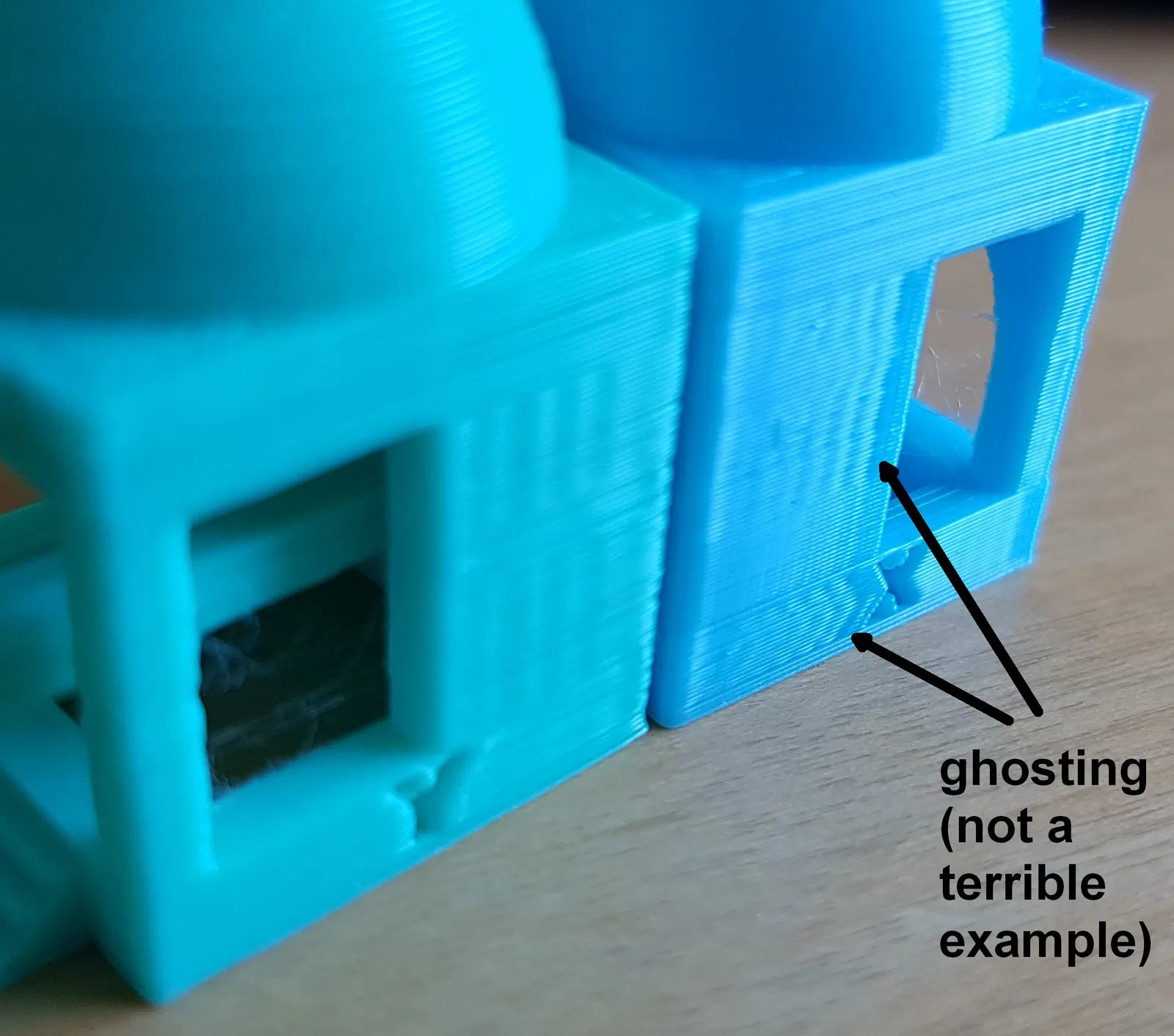 - “ghosting” - Điều này đến từ các dao động của chuyển động máy in. Đây là một cái hố không đáy - chỉ cần giảm tốc độ nếu bạn quan tâm, hoặc tìm kiếm "ghosting" trên Google và xin nghỉ phép.