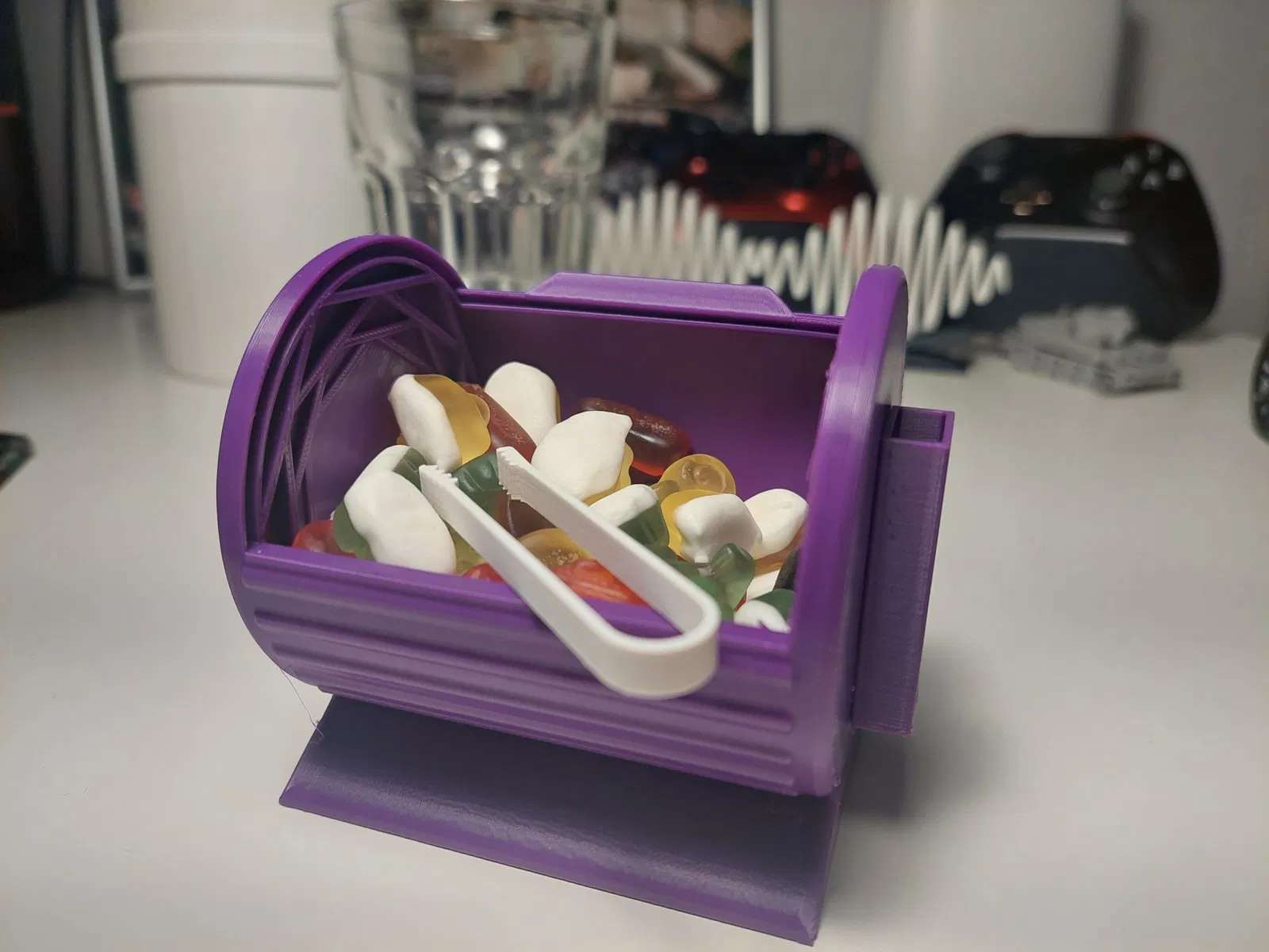 Đừng xài tay nữa, vệ sinh hơn với kẹp gắp này! Có đế giữ tùy chọn để gắn vào hộp snack roll-top của LoboCNC. Khuyến khích dùng brim khi in. Có thể scale tùy ý.