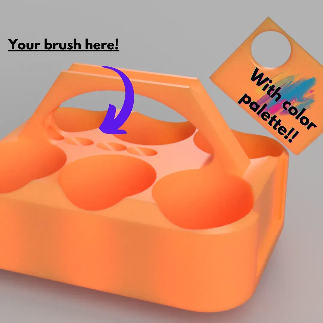 Cái rổ đa năng này đựng được 4 cây cọ và 6 lọ sơn, tha hồ mang đi bất cứ đâu bạn muốn! Có cả khay pha màu tiện lợi, chỗ cắm cọ chắc chắn. Chỉ cần in ra là có ngay bộ dụng cụ vẽ nhỏ gọn.