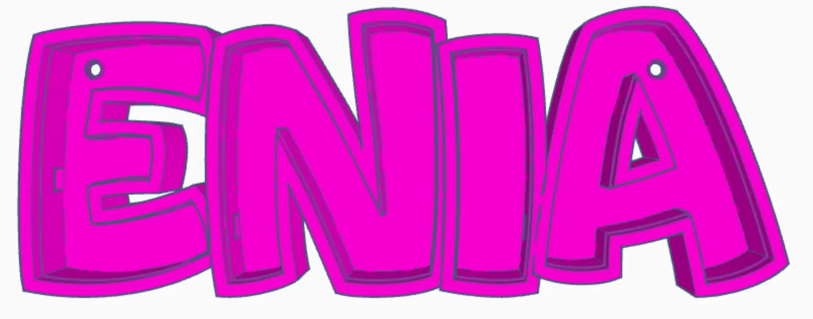 Mô hình đèn tên LED "ENIA" có thể in được, được thiết kế để ghép lại từ các chữ cái riêng lẻ. Hoàn hảo để làm quà tặng cho trẻ em hoặc trang trí nhà cửa. Hướng dẫn chi tiết về cài đặt in, vật liệu (PETG/PLA), keo dán và cách lắp đặt dải LED.