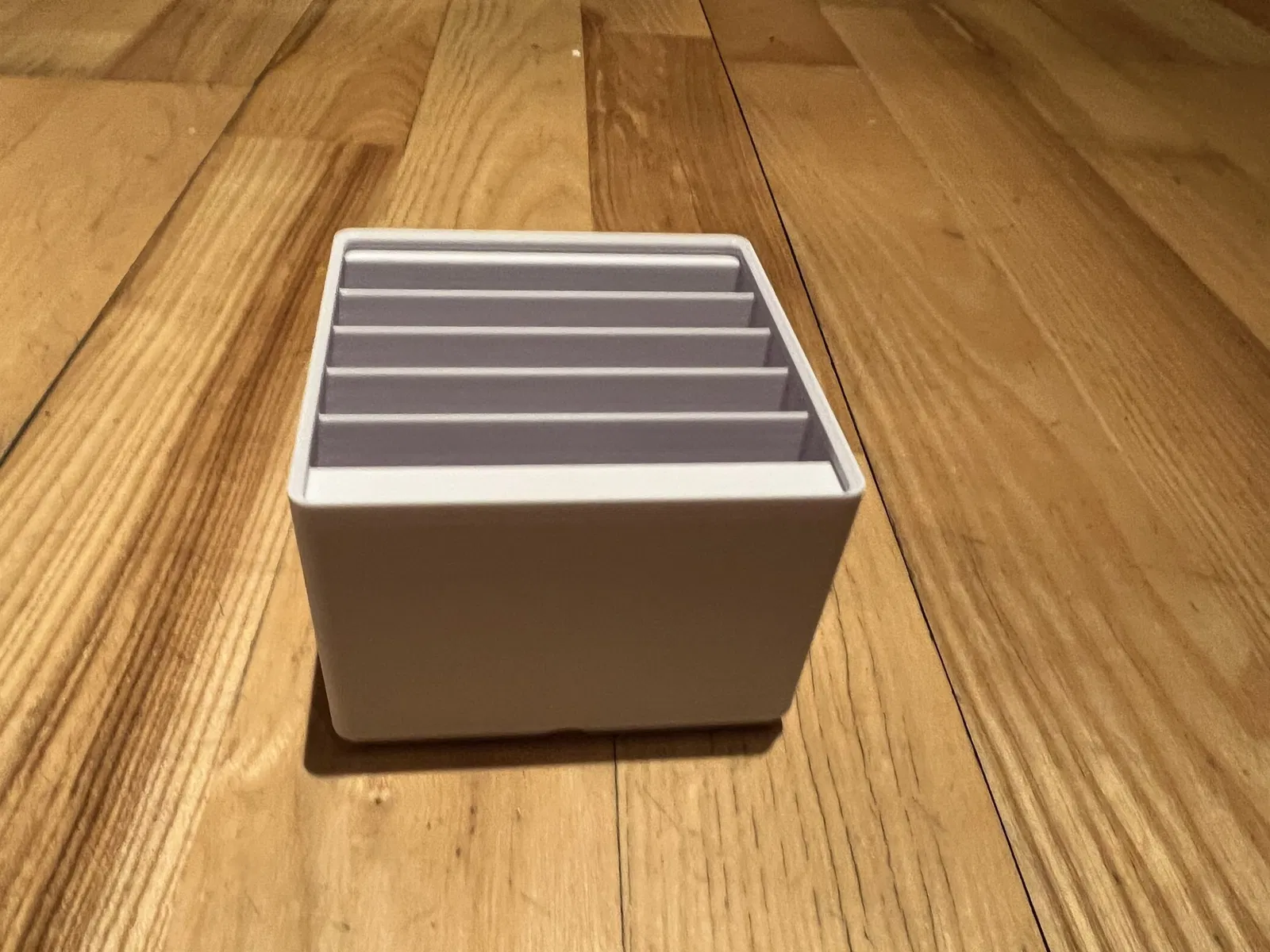 Một đế đựng giấy ghi chú khổ 2x2x8 Gridfinity. Có thể đựng 5 chồng giấy ghi chú tiêu chuẩn (kích thước 76x76 mm hoặc 3x3 inch).