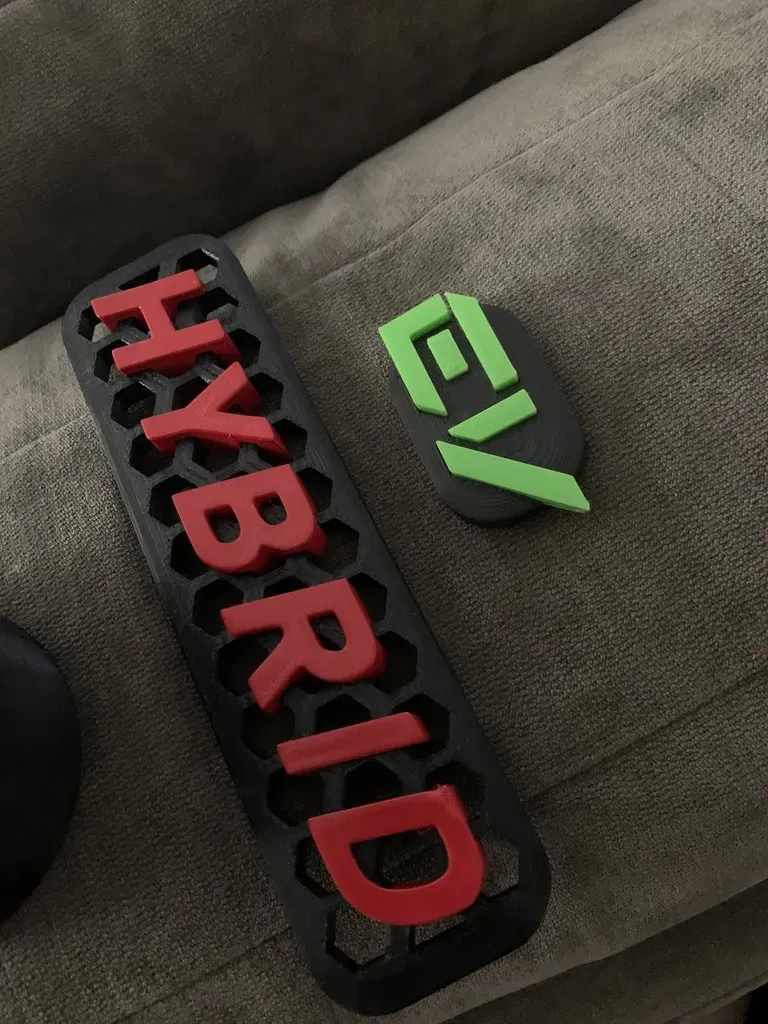 Tui thiết kế mấy cái logo xe Hybrid và xe Điện cho bạn bè, có thể gắn bằng nam châm cho tiện. Đã test trên máy Ender 3 Pro, dùng nhựa PETG để chịu nhiệt tốt. Nhớ chỉnh scale cho phù hợp máy in nha!