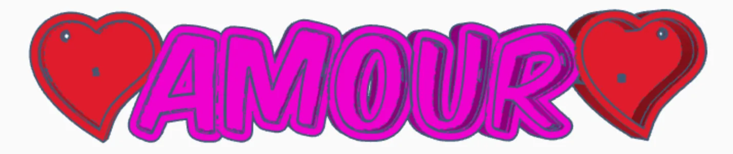 “AMOUR” như một đèn tên LED có thể in được. Phiên bản 2 với trái tim LED.