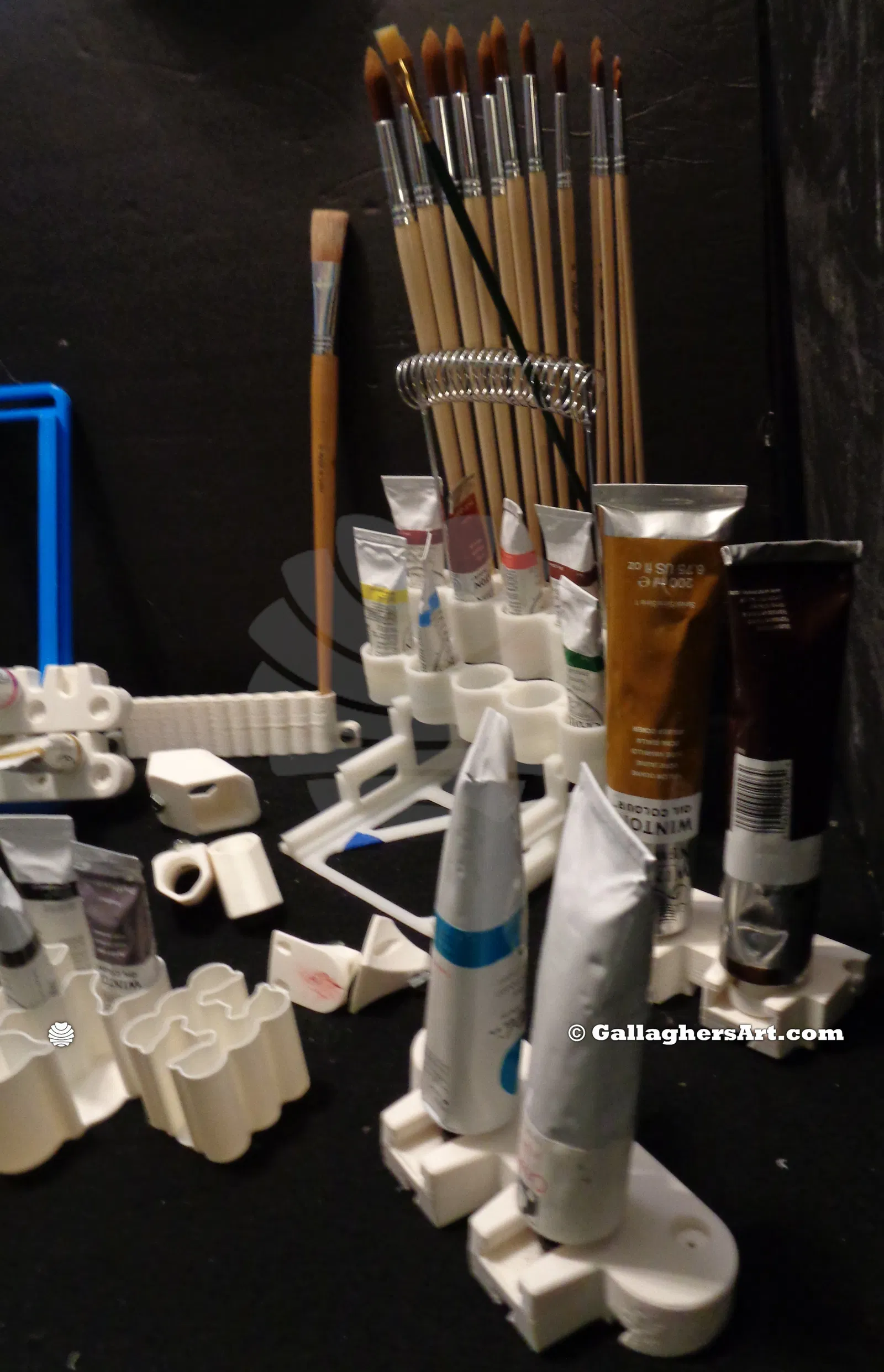 Bộ giá vẽ và phụ kiện lưu trữ sơn dầu cho họa sĩ, bao gồm module cất tuýp sơn, cắm cọ, bảng pha màu, và nhiều hơn nữa. File FreeCAD parametric có sẵn. Cần ủng hộ filament để phát triển thêm.