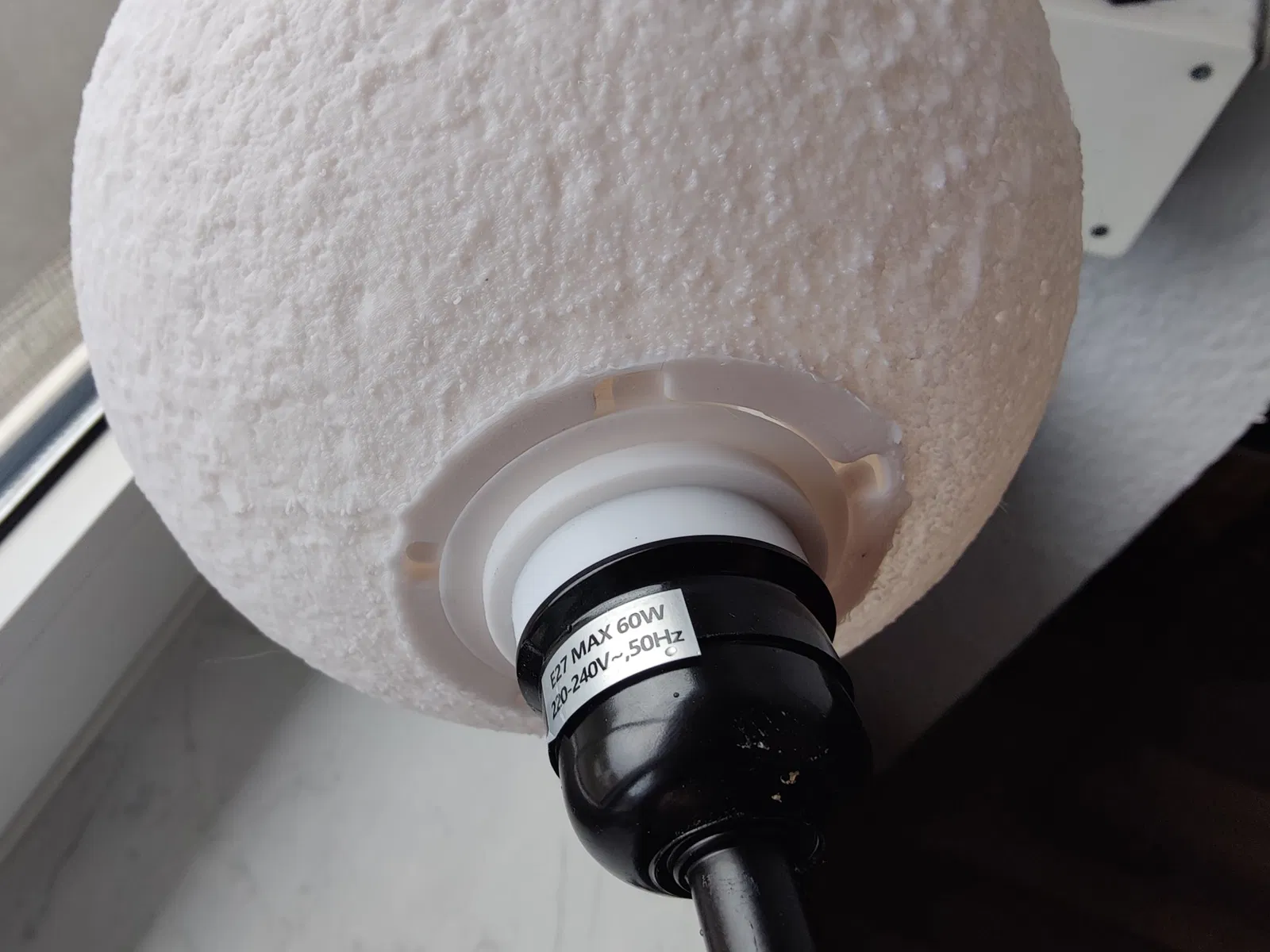 Mấy cái bộ phận của cái đèn Ikea để cố định cái đèn mặt trăng của bạn Frank Deschner và mấy cái đui đèn E27 á, tui thấy xài hok có được lắm, nó lỏng quá hoặc là dày quá hok vừa mấy cái đui đèn E27 mà tui thử. Mà tui tính làm mấy cái đèn này với cái đèn mặt trăng in ra cho dịp Giáng Sinh á, nên nó phải đa dụng hơn để gắn mấy cái đui đèn khác vô dễ dàng.
