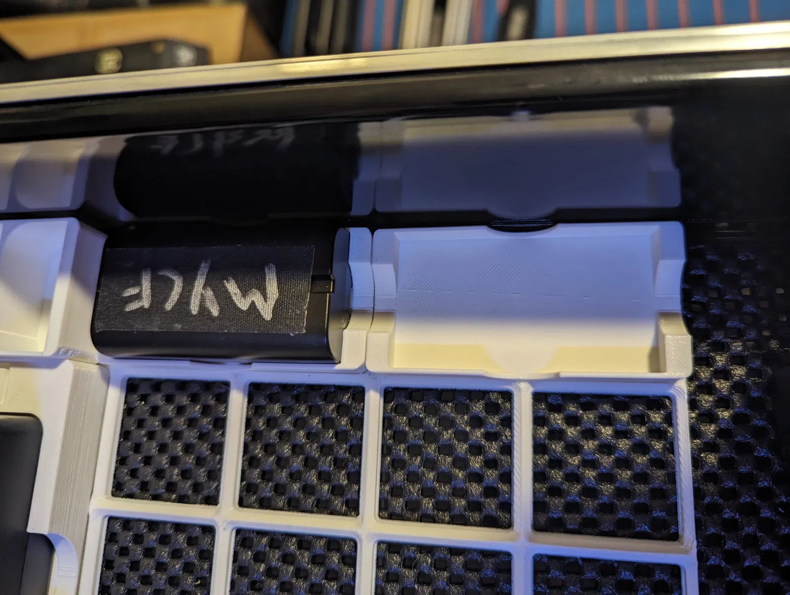 Một tấm lưới 1x2 để giữ một pin máy ảnh Sony NP-F550 duy nhất.
