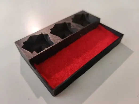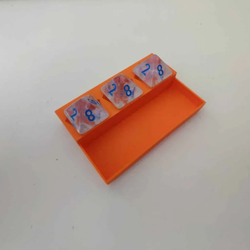 I made this small bardic inspiration tracker/holder with 3, 4 or 5 slots. Every slot fits a d6, d8, d10 and d12 dice