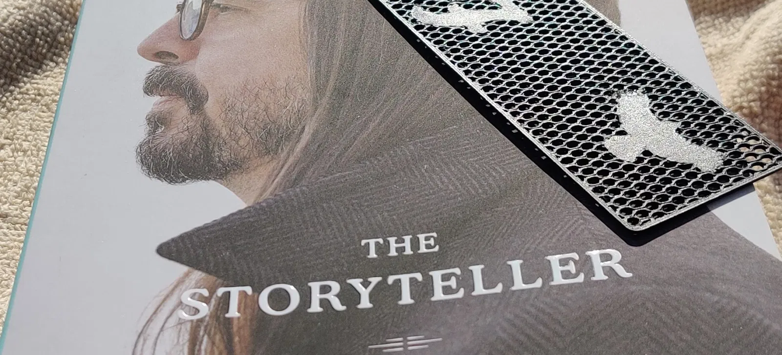 Tui đã làm cái bookmark in 3D này hồi mùa hè năm ngoái, để tưởng nhớ ban nhạc yêu thích của chúng ta và Taylor Hawkins phi thường. Một mặt là logo Foo Fighters kinh điển, mặt kia là hình đại bàng của Taylor.