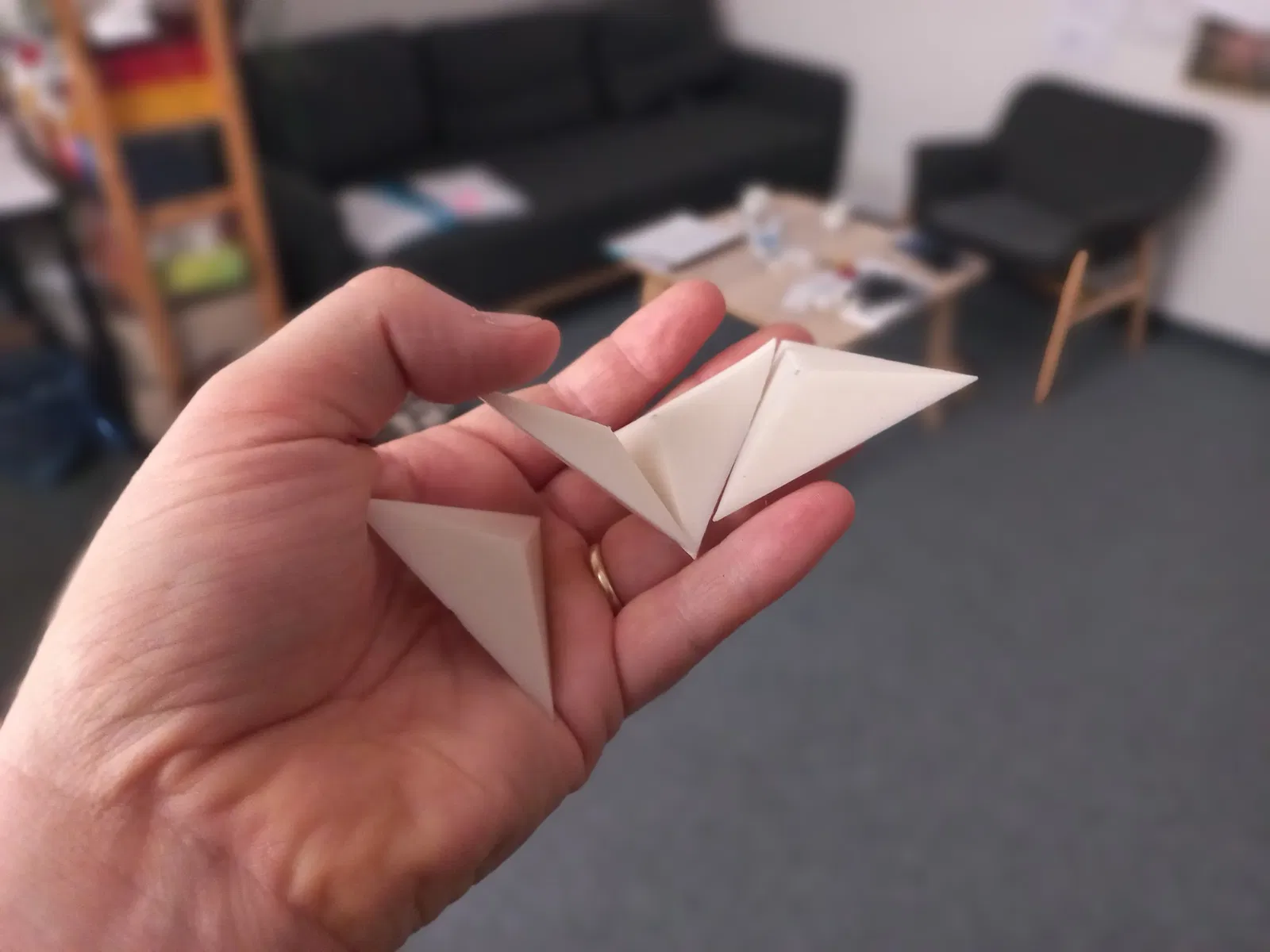 Cái mô hình này có thể in ra thành 4 khối chóp tam giác, hoặc là 1 khối cộng với khối tứ diện mà thiếu đi một chóp.