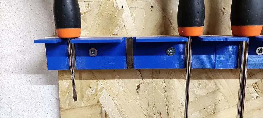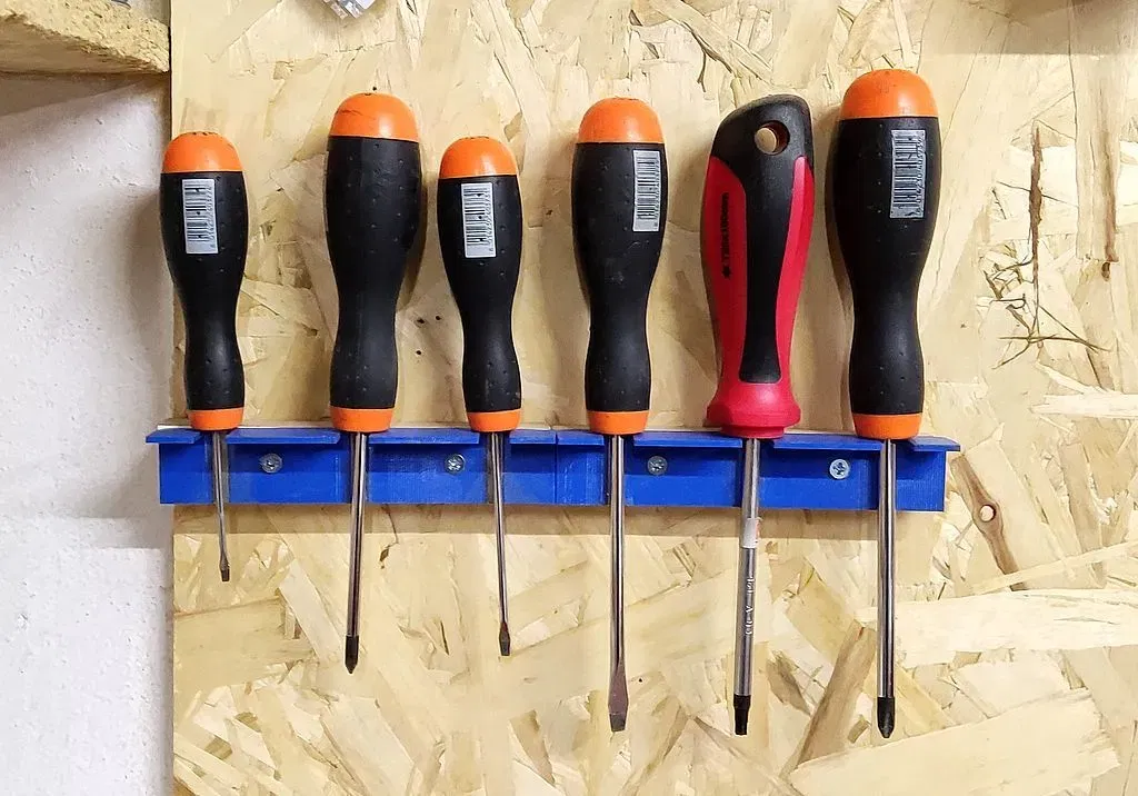 Giá đỡ tua vít có nam châm, rất hợp để đựng các dụng cụ khác. Nhờ có nam châm, bạn có thể dễ dàng thay đổi vị trí tua vít. Nếu gắn lên tường, bạn cần thêm miếng đệm dày bằng tay cầm tua vít lớn nhất.