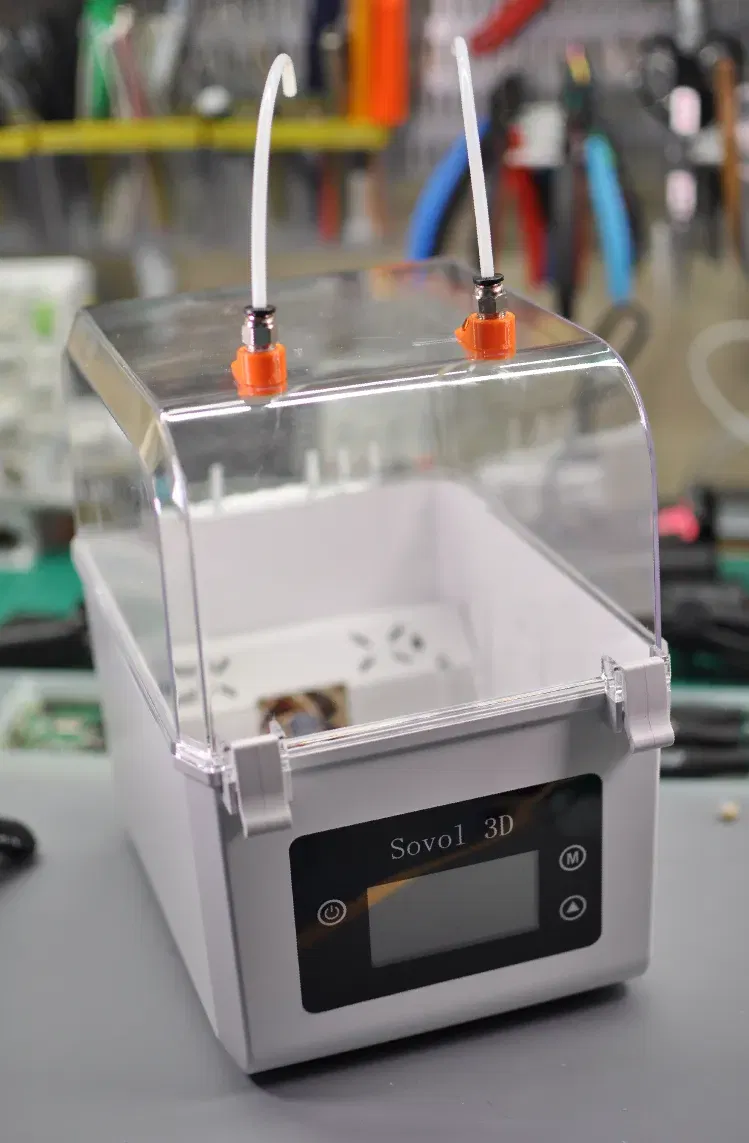 Tao muốn gắn thêm mấy cái khớp nối đẩy vô cho cái máy sấy filament của tao. Đây là cái tao nghĩ ra, xài ngon lắm. Anh em cần khoét lỗ để cho cái ống dẫn dây tóc đi qua, với lại khoét lỗ để bắt ốc siết hai phần lại với nhau.