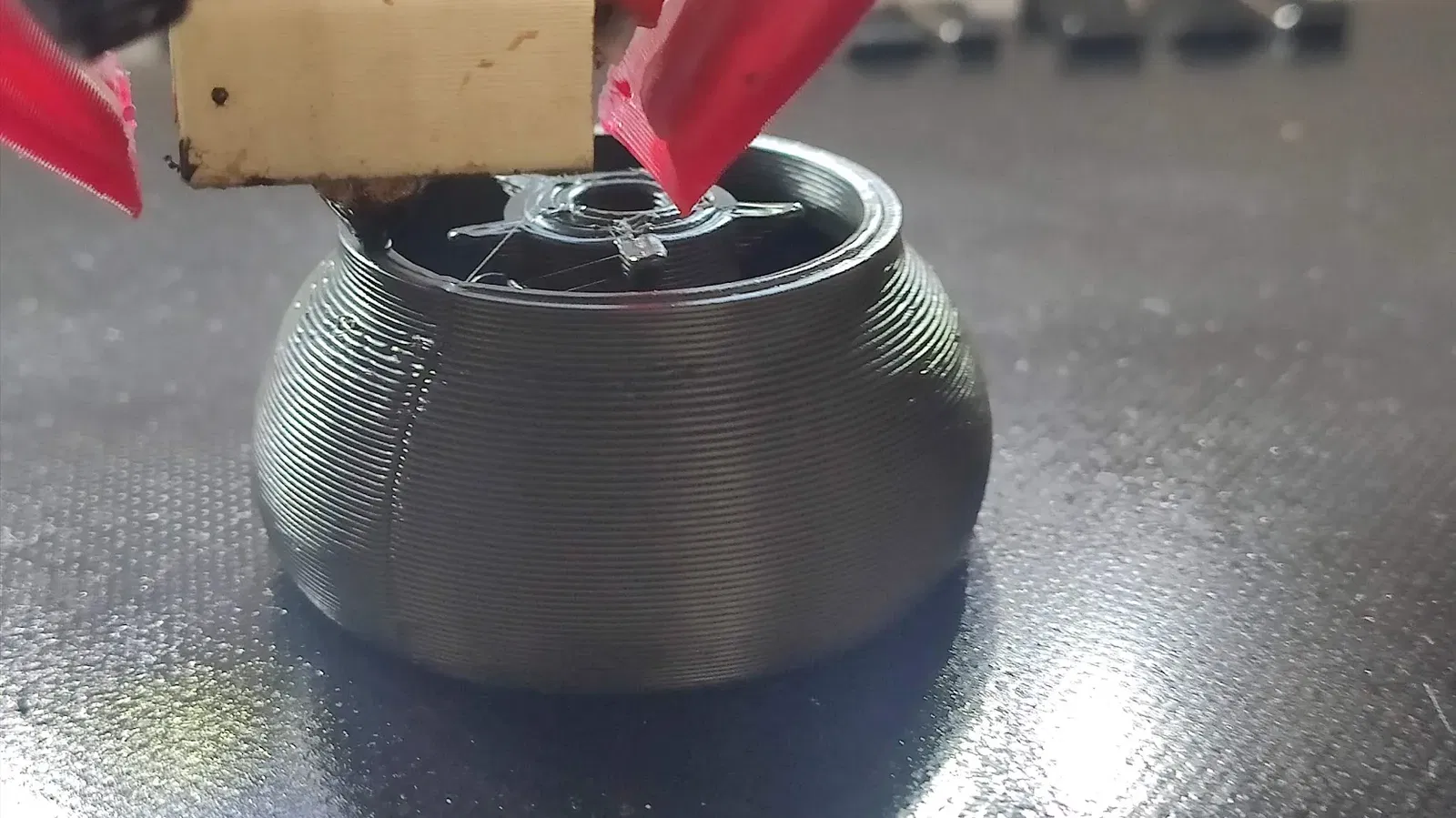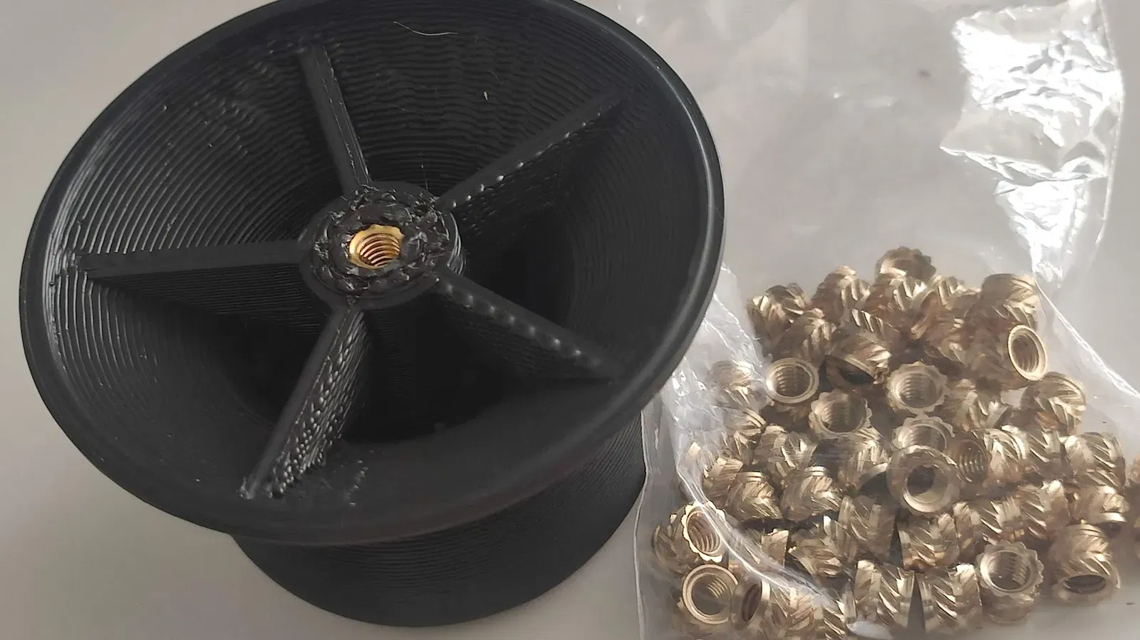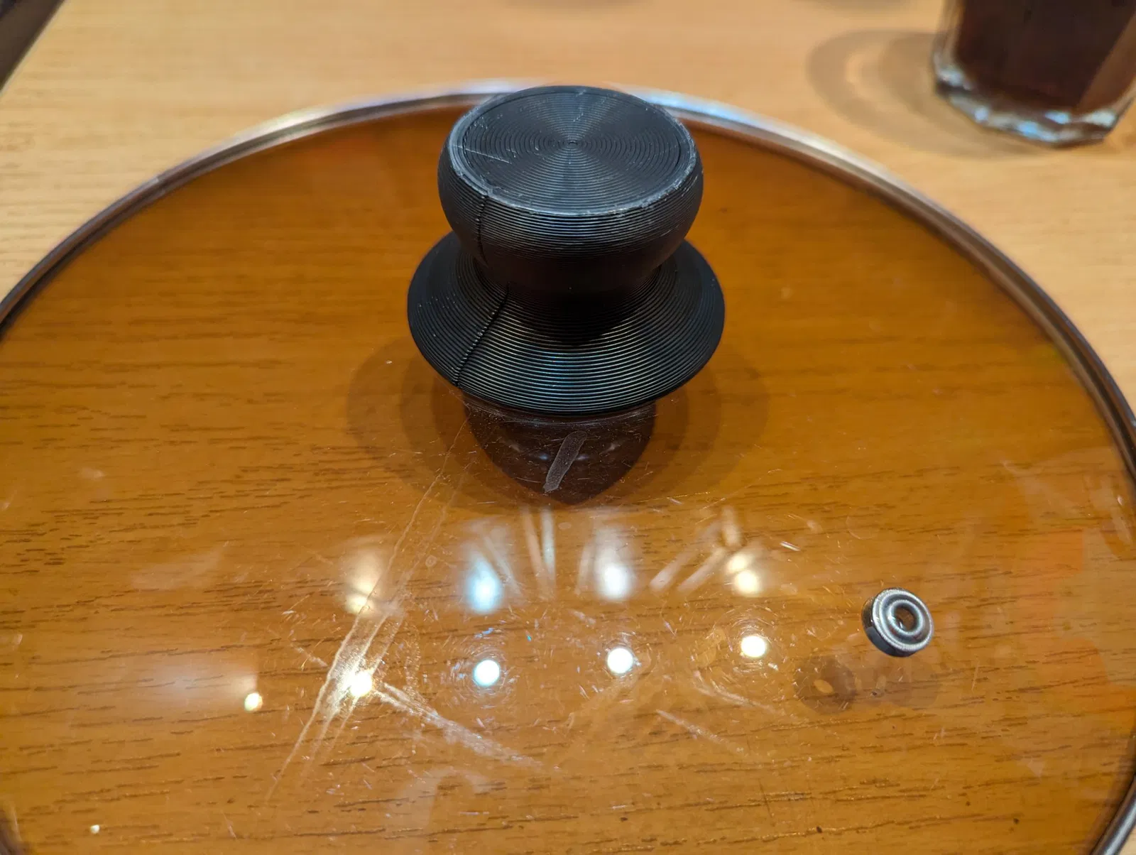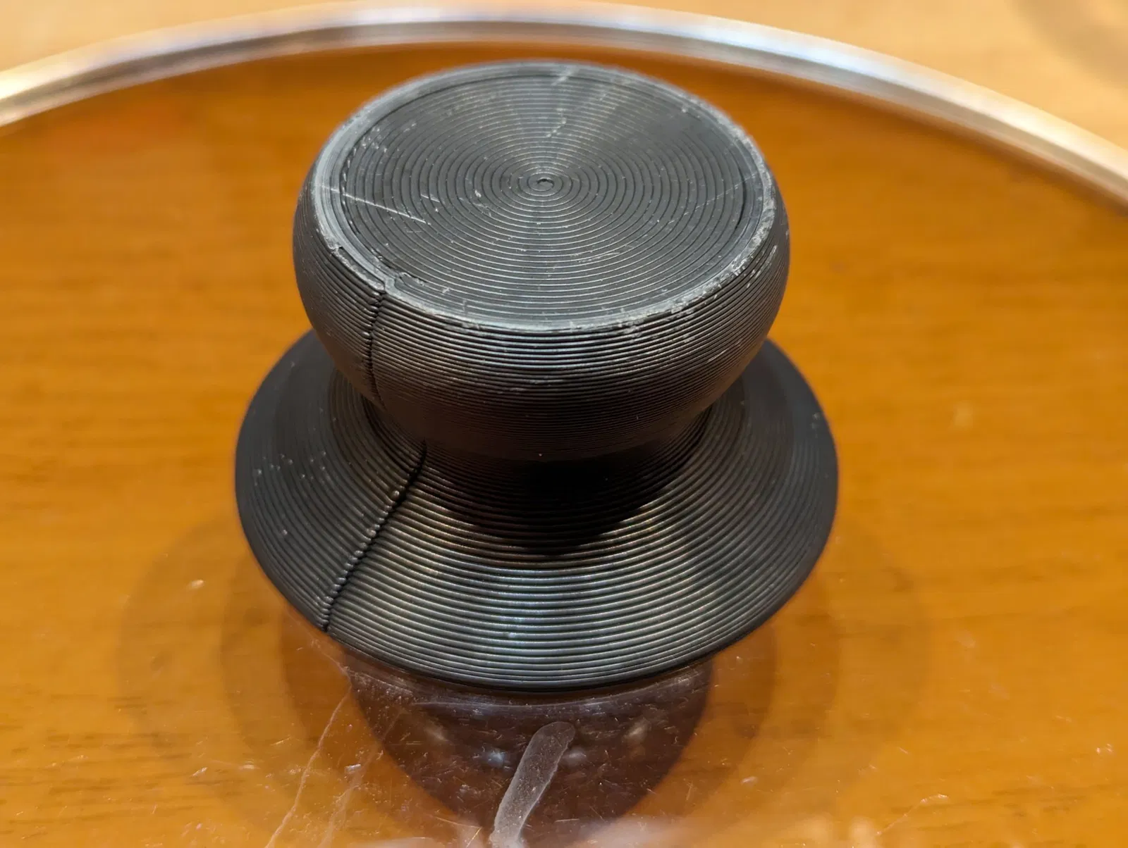 Tay nắm vung nồi. Ảnh thật sau 1 năm sử dụng, rửa bằng máy rửa chén mỗi ngày. Chất liệu filament fiberlogy ABS. Thiết kế với 2 insert, vẫn hoạt động tốt sau thời gian dài.