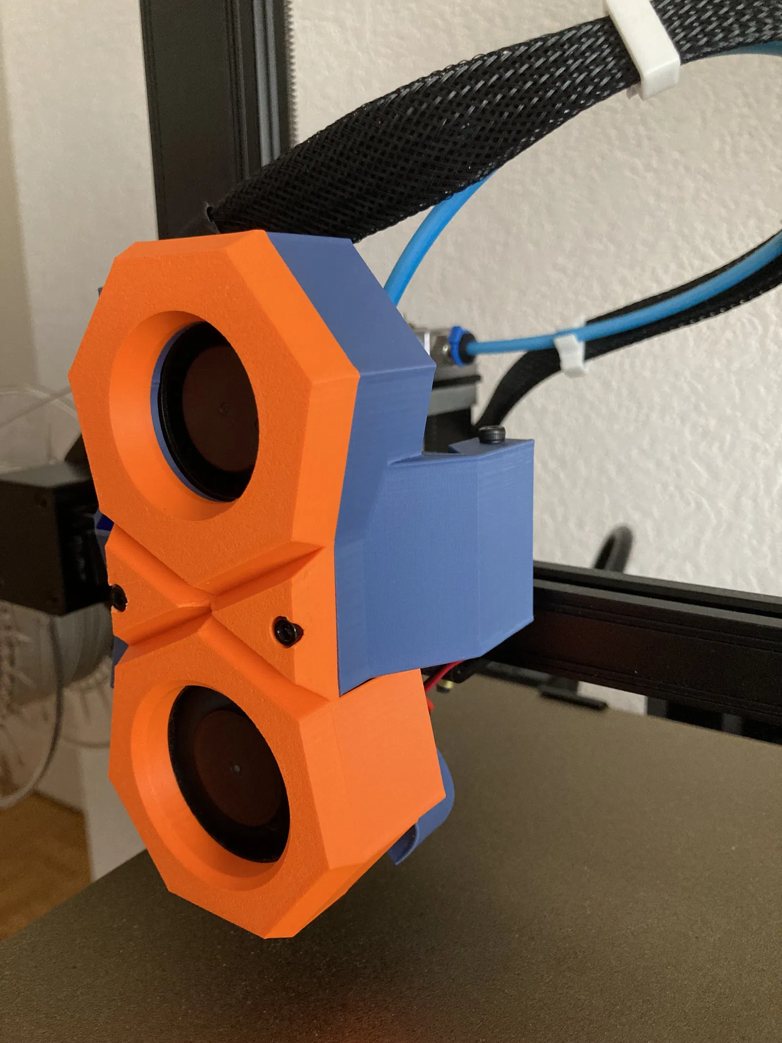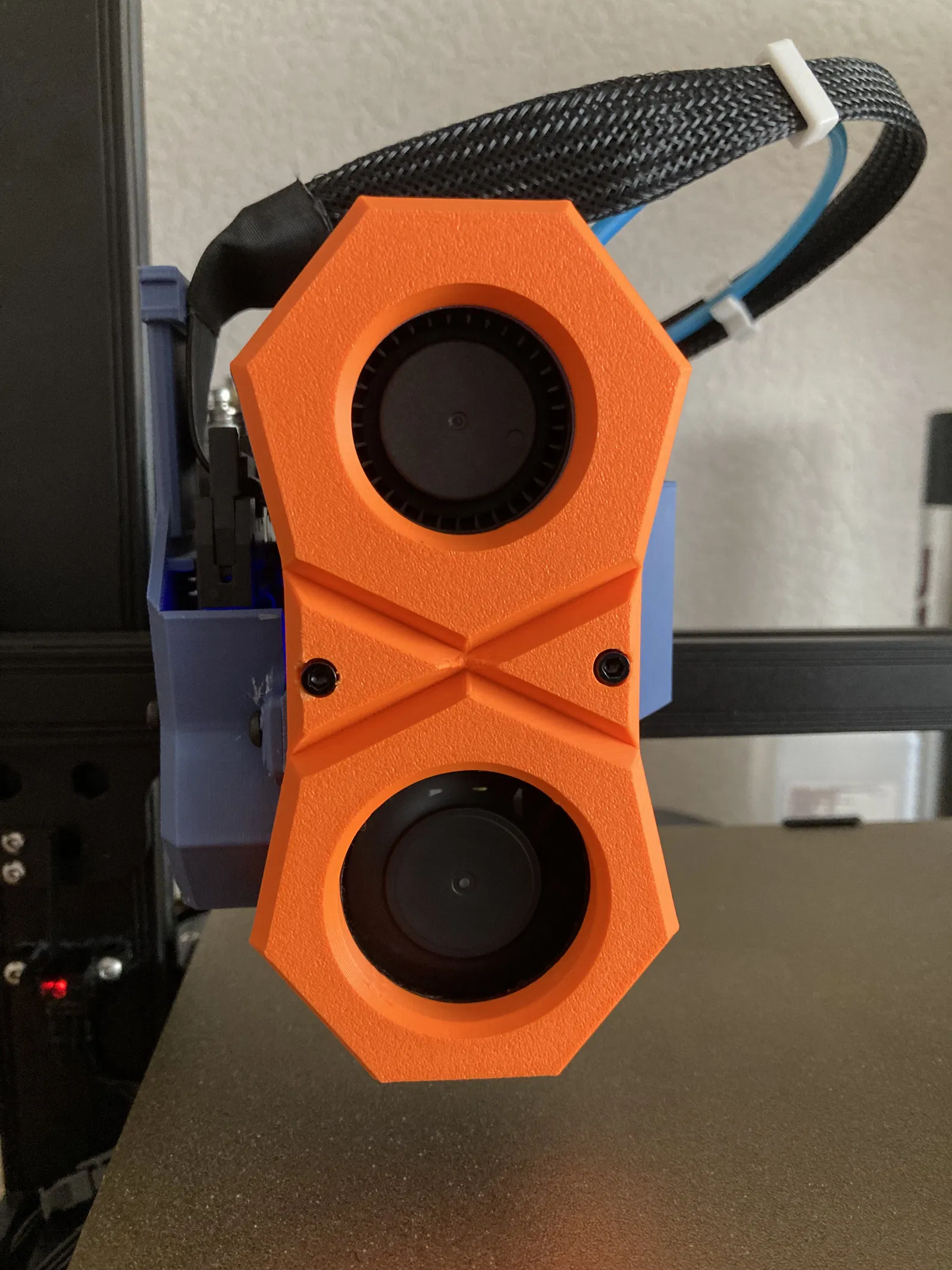 Bộ phận làm mát được cải thiện bằng cách lắp một quạt thổi ly tâm 5015 hoặc 4020. Kênh dẫn khí đi cả hai bên vòi phun.