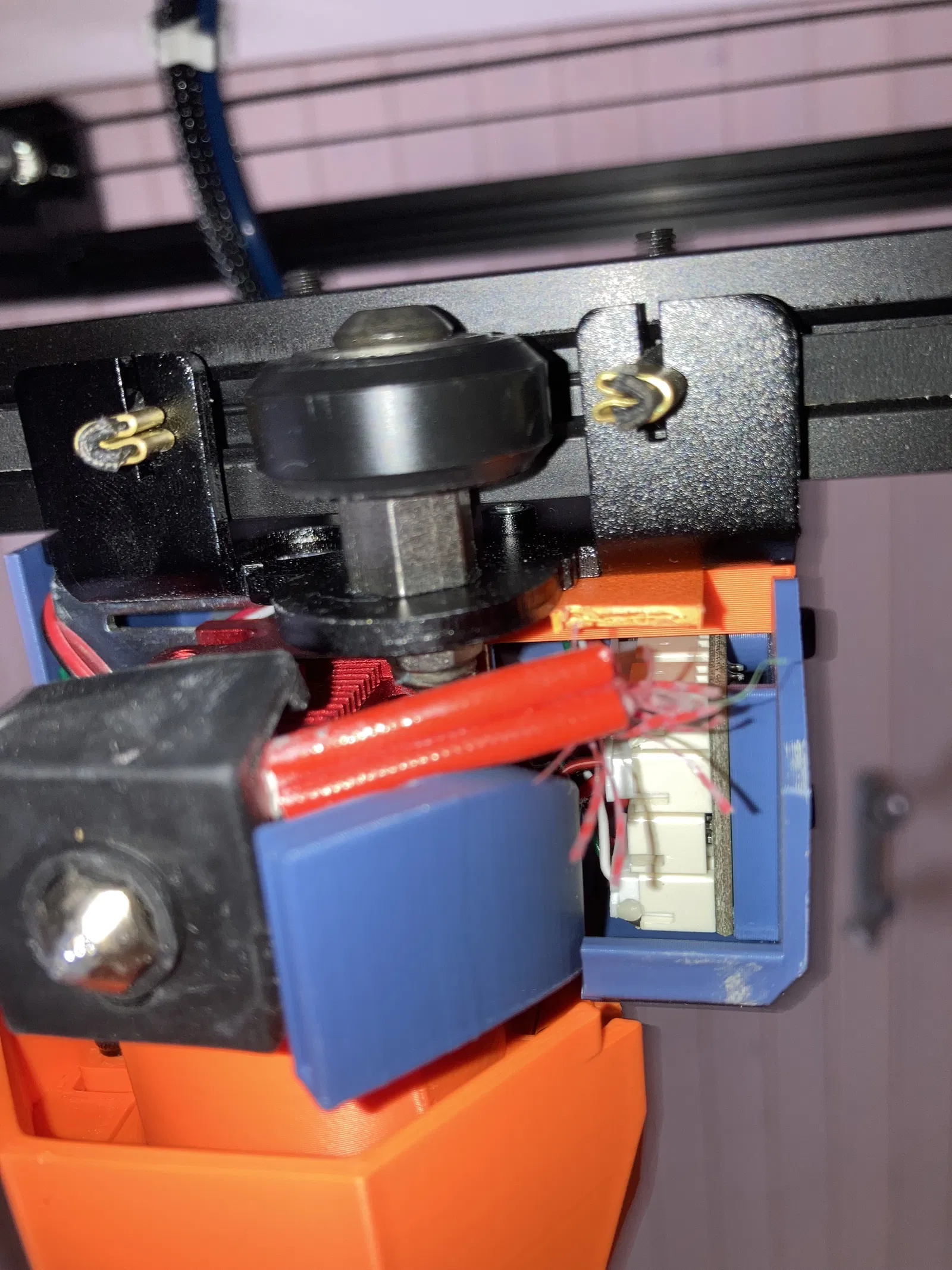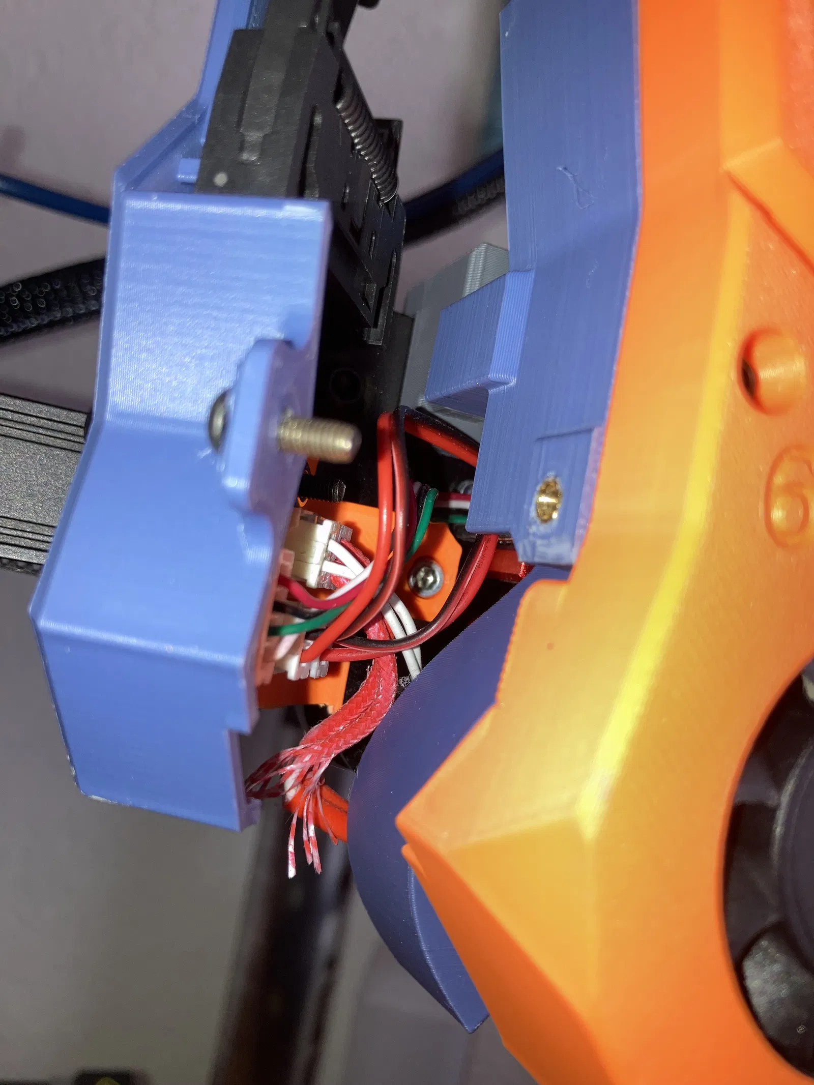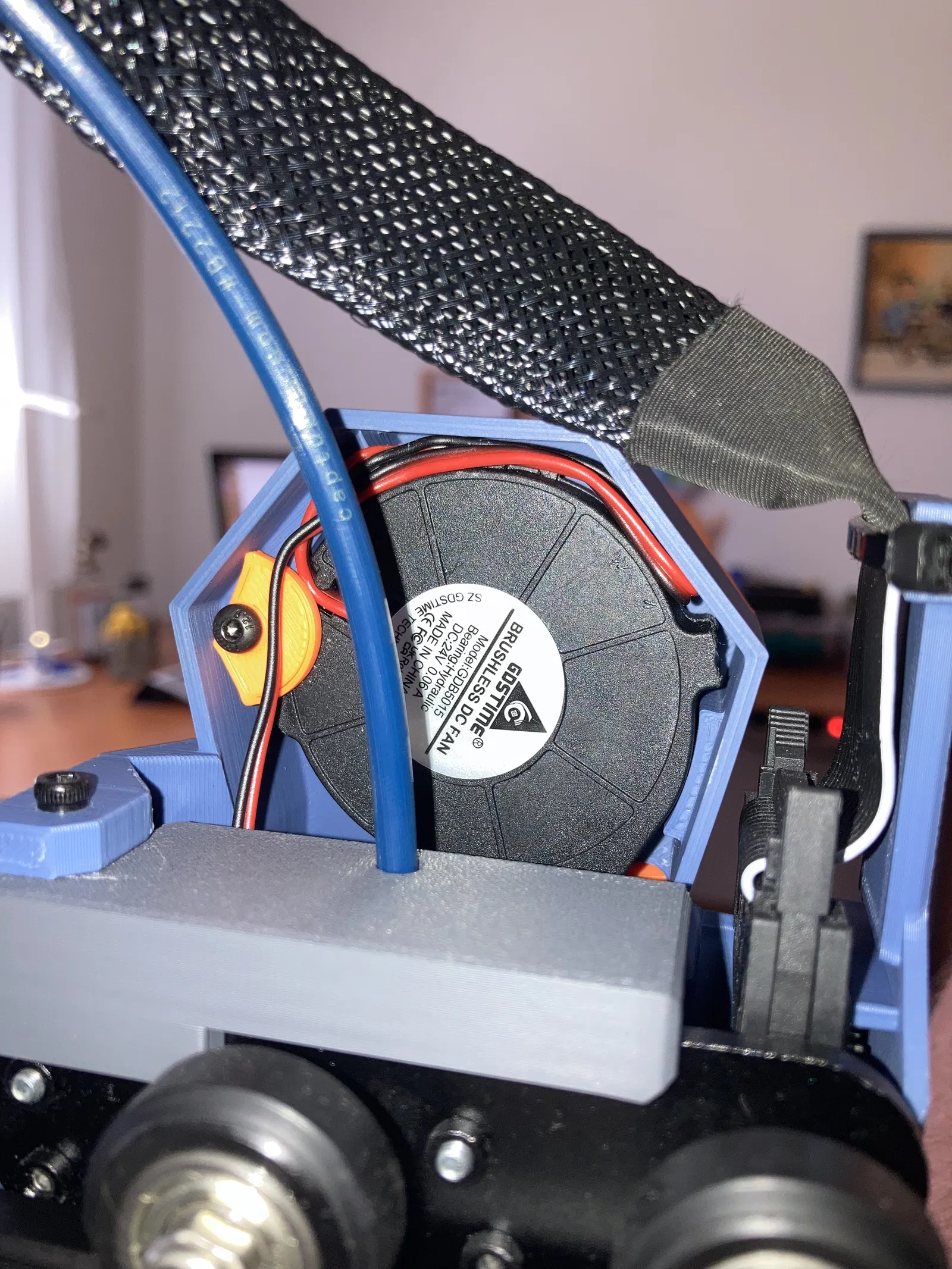 Có một vài hình ảnh để cho thấy việc quản lý dây cáp, 2 dây quạt đi qua bộ căng dây và phía sau bộ chặn PTFE (màu đen). Dây bộ phận làm nóng và dây cảm biến nhiệt được "đẩy" ra phía sau bởi bộ phận làm mát.