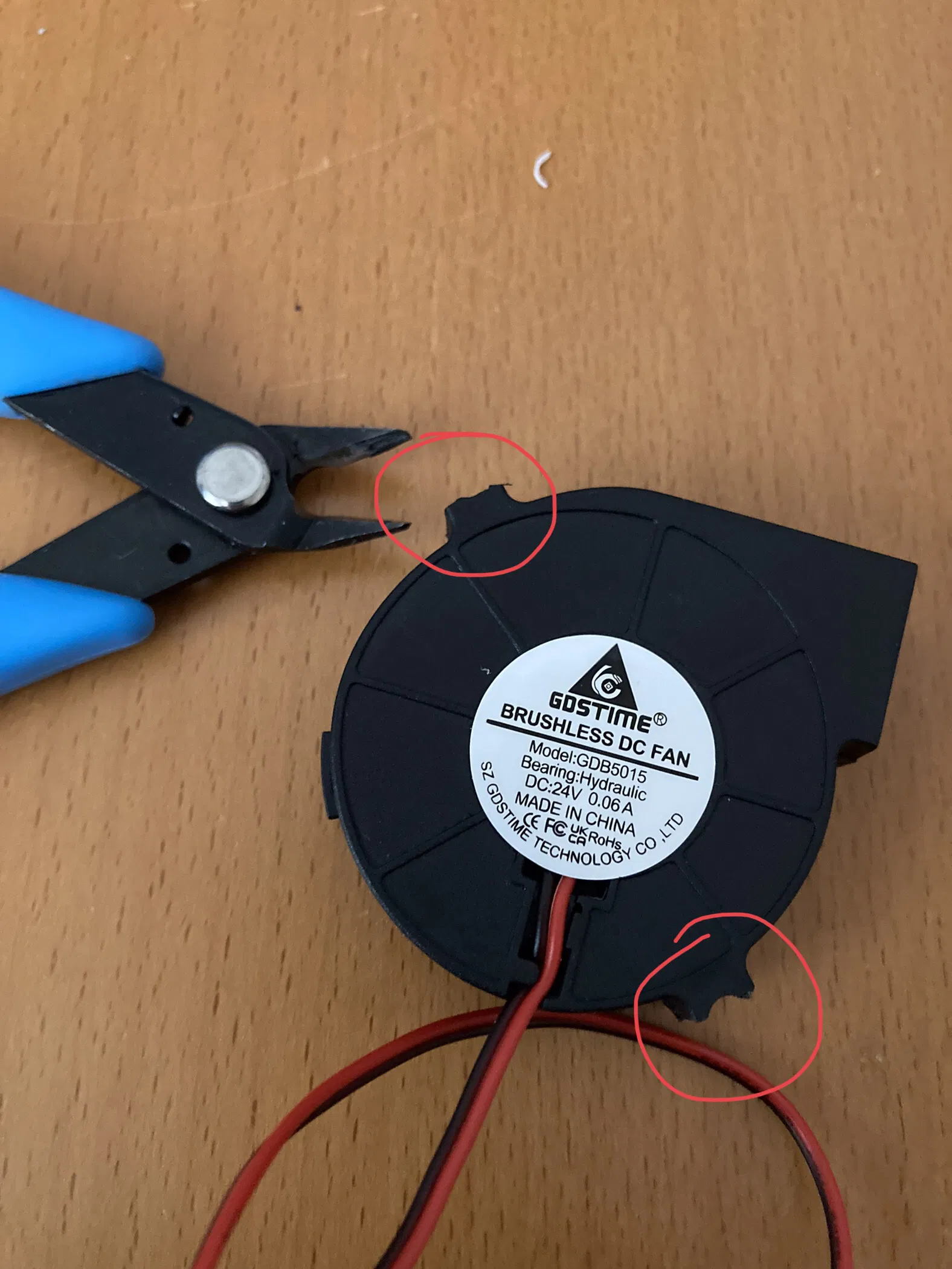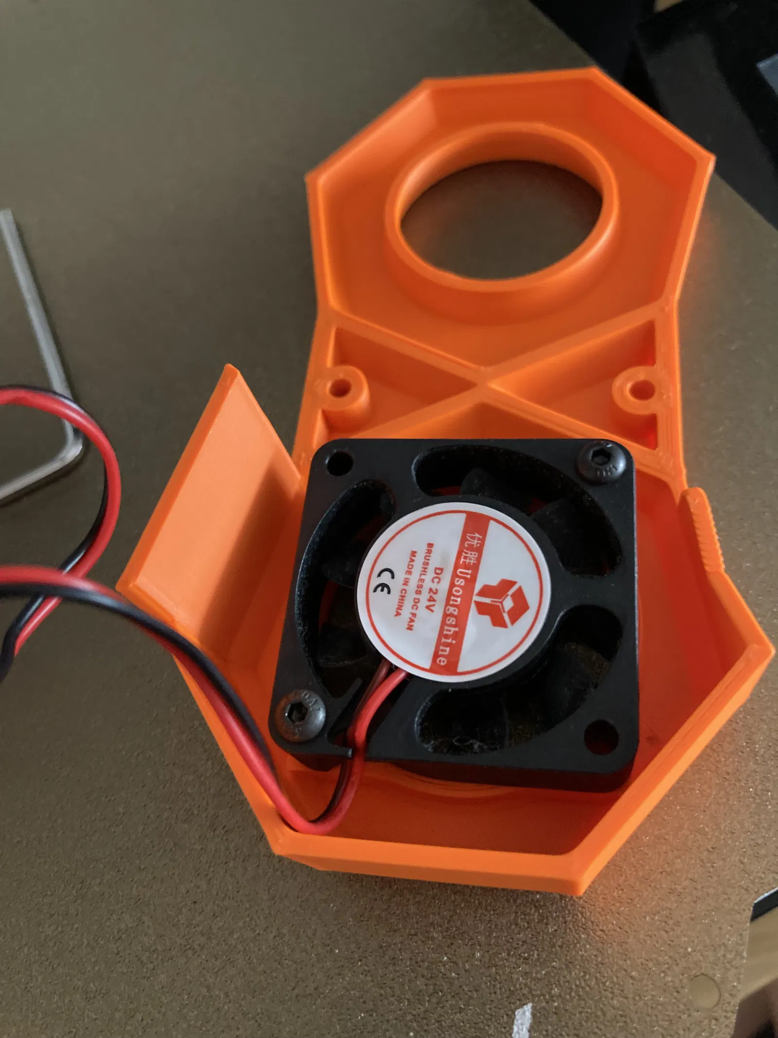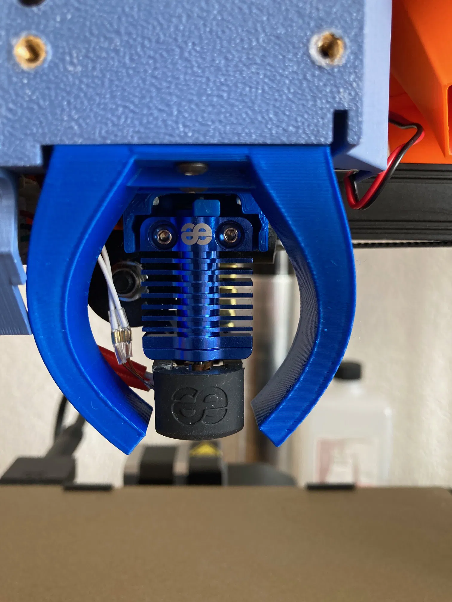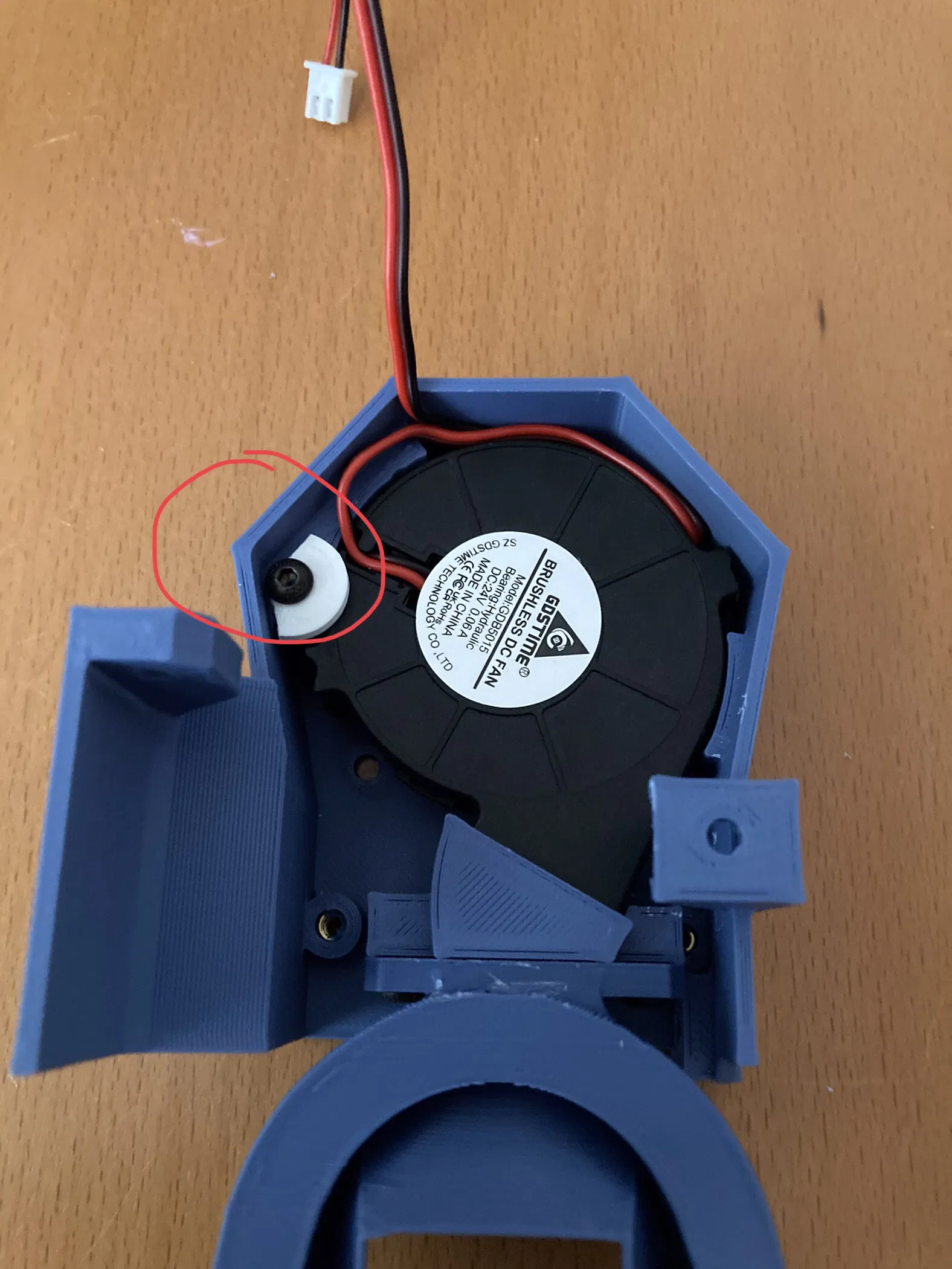 Có một vài hình ảnh để cho thấy việc quản lý dây cáp, 2 dây quạt đi qua bộ căng dây và phía sau bộ chặn PTFE (màu đen). Dây bộ phận làm nóng và dây cảm biến nhiệt được "đẩy" ra phía sau bởi bộ phận làm mát.