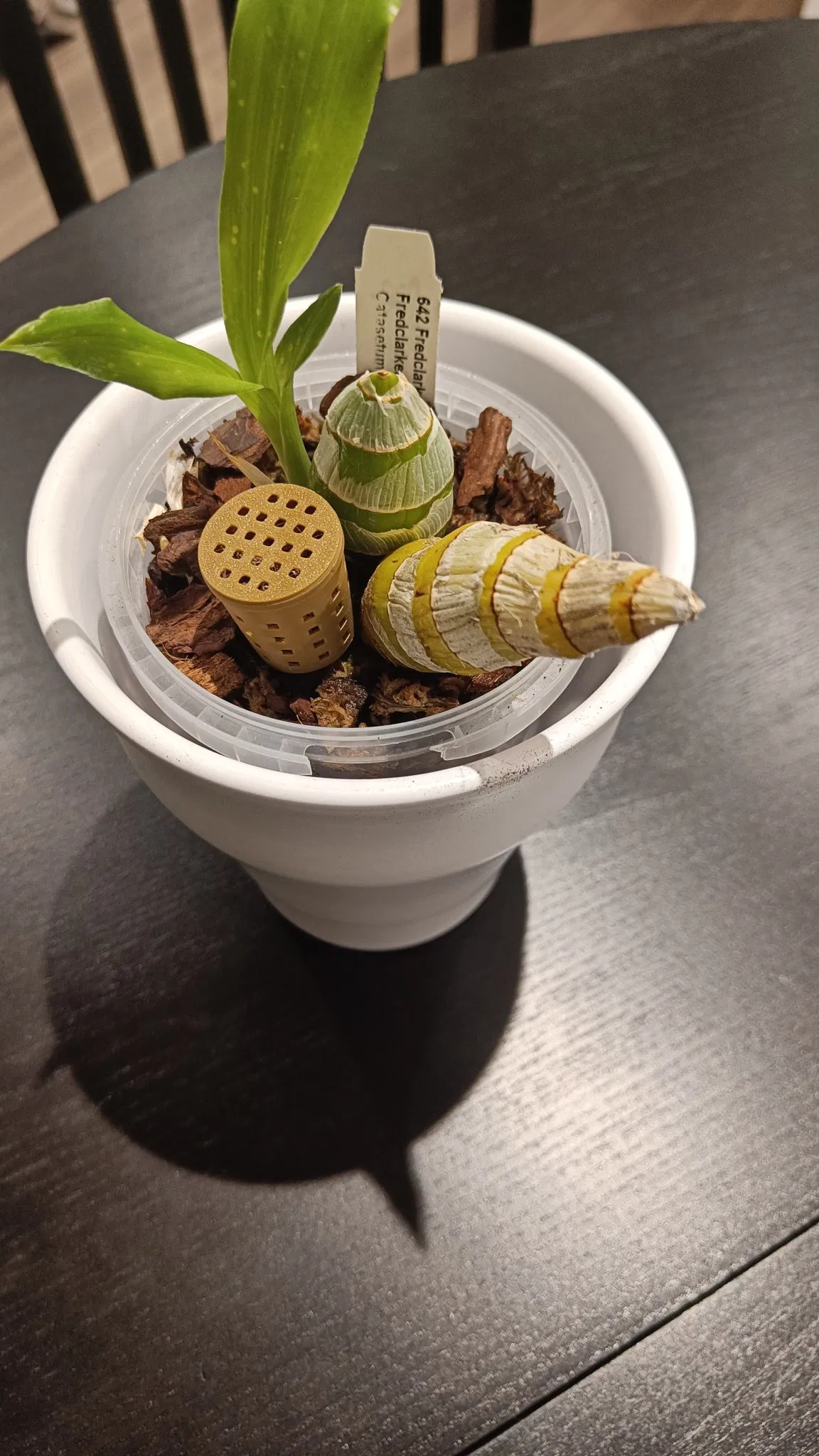 Tôi đã làm cái giỏ nhỏ này mà bạn có thể cho một ít phân bón vào và nó sẽ cung cấp cho cây của bạn một liều nhỏ khi tưới nước hoặc xịt sương hàng ngày. Nó cũng hoạt động ngoài trời khi trời mưa.