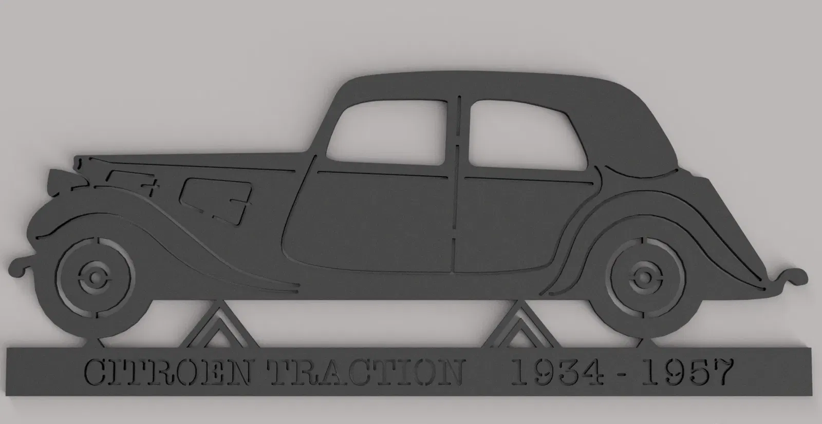 Tranh tường silhouette độc đáo của chiếc xe huyền thoại Citroen Traction, biểu tượng của Thế chiến II. Kích thước gốc 30cm x 30cm, dày 3mm, dễ in và trang trí tường.