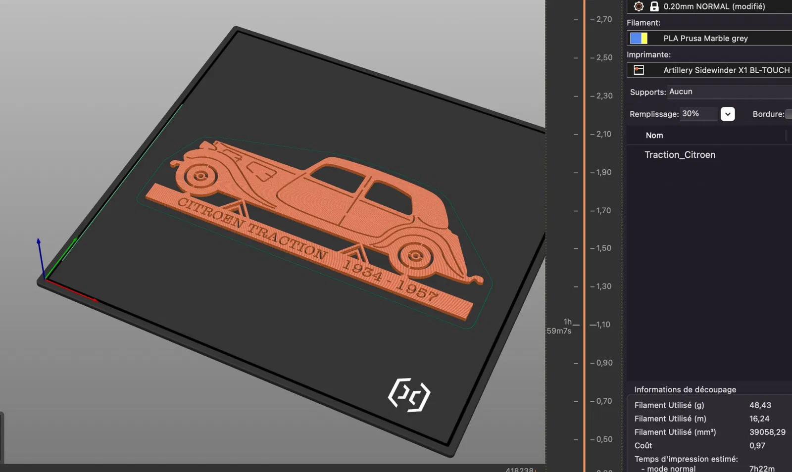 Độ dày 3mm. có thể tăng lên để cứng cáp hơn. Nên dùng tính năng ironing để có thẩm mỹ tốt hơn.