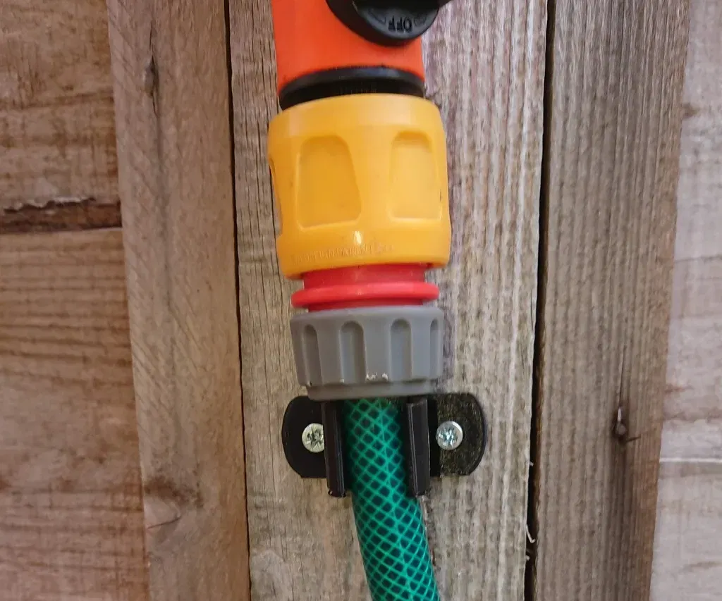 I've been working on an irrigation project for my garden over many years, and in 2019 found the need to make a couple of brackets to hold my hose, giving standoff room for hoselock fittings. I originally published this collection to Thingyv in 2019, and those original brackets still hold strong, as do many more added over the years.