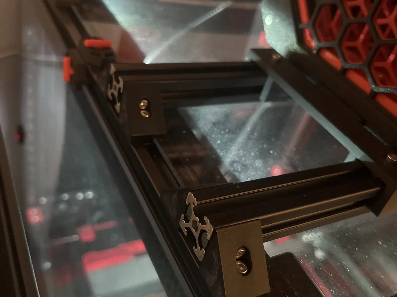 Một cái giá đỡ ke góc đơn giản, có khoảng hở cho các tấm stock ở trên đỉnh máy in Voron 2.4/Trident. Hướng dẫn in mỗi mặt 2 lần cho mỗi thanh nhôm profile cần gắn.