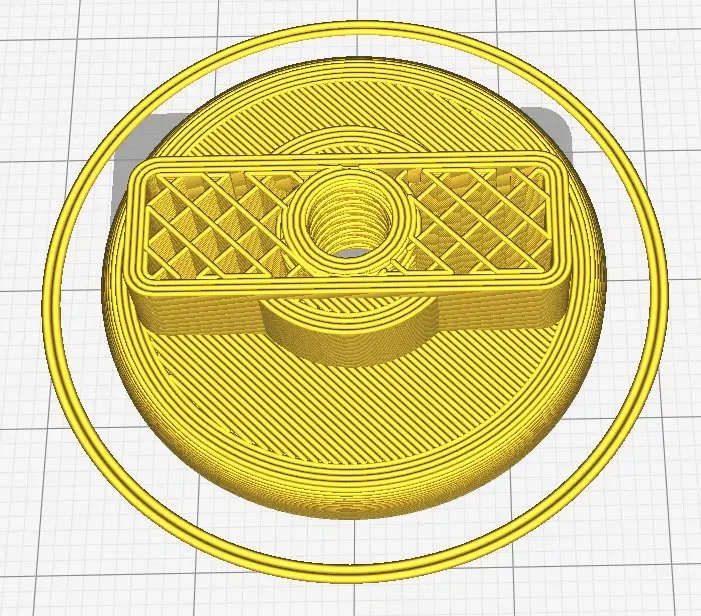 Tui có kèm hình chụp hai phiên bản đặt cạnh trụ ren trên xe, và bản ốc nhựa đã gắn vô trụ. Rồi hình chụp lát cắt (Cura) cho thấy kiểu infill zigzag đẹp mắt và ren có thể thấy rõ. Và cục xiết zin của Toyota để mọi người cùng cười nó chơi :o)