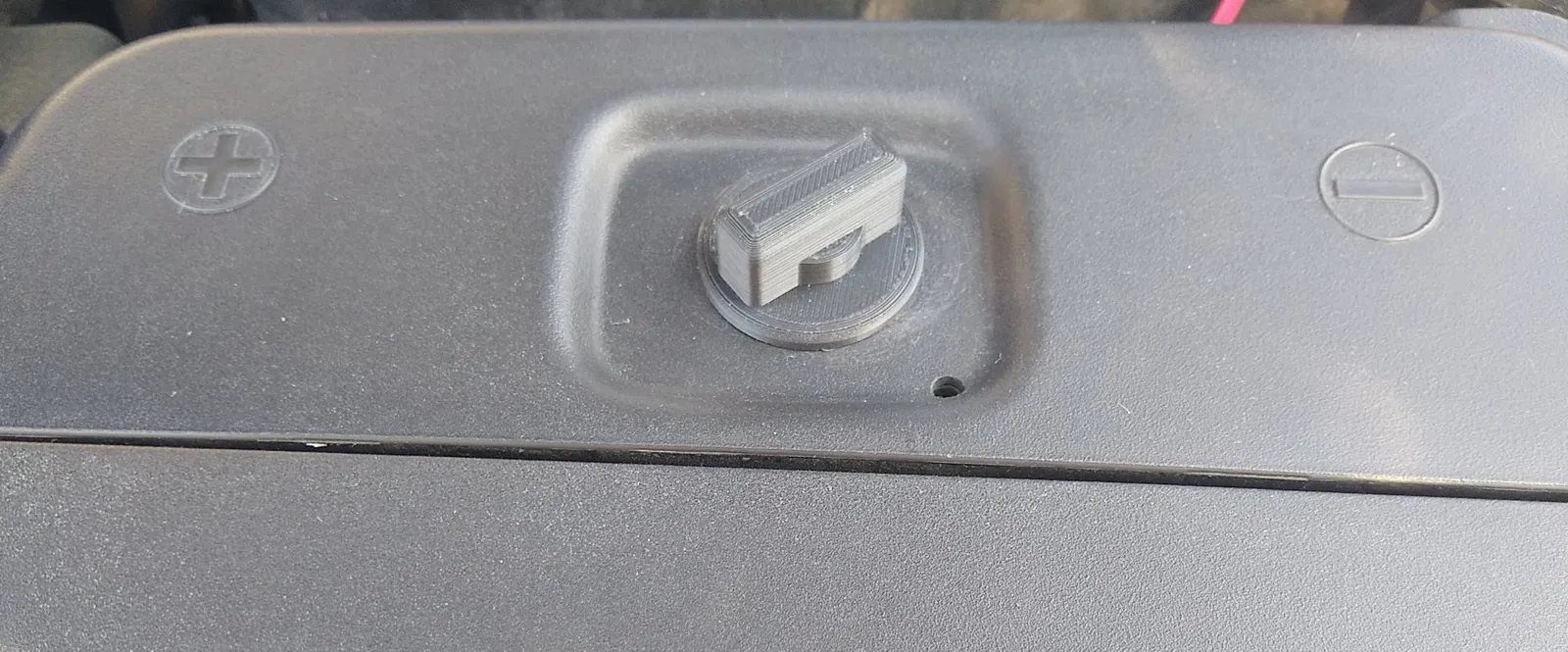Do tui là lính mới tò te về CAD, lần đầu tui làm là tui kiếm một con ốc sắt trong thùng đồ nghề, may mắn là nó vừa với cái trục ren lòi ra ở khoang pin. Nên tui thiết kế cục xiết nhựa mới xoay quanh con ốc đó rồi dán nó vô. Làm ngon ơ.