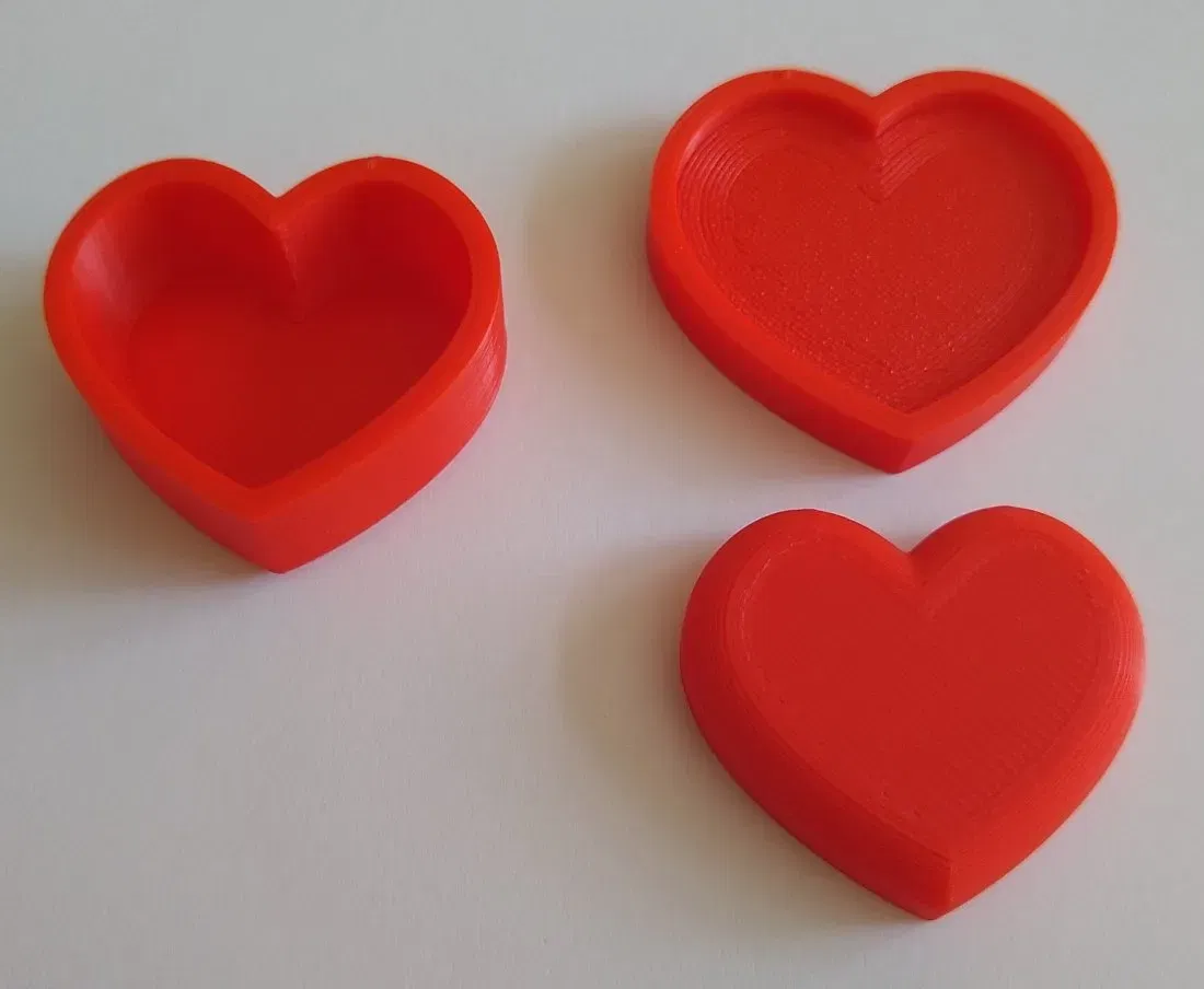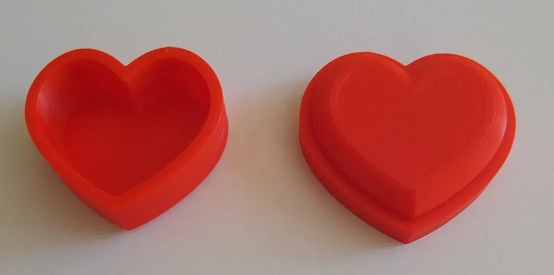 Hộp trái tim có nắp đậy, có thể dùng làm đồ trang trí hoặc đựng nhẫn/bông tai nhỏ. Thiết kế này có phần ruột và bộ gá để căn chỉnh chính xác, đảm bảo bề mặt hoàn thiện mịn màng và nắp vừa vặn hoàn hảo. Bạn có thể tùy chỉnh chiều cao nắp và thân hộp bằng tệp F3D.