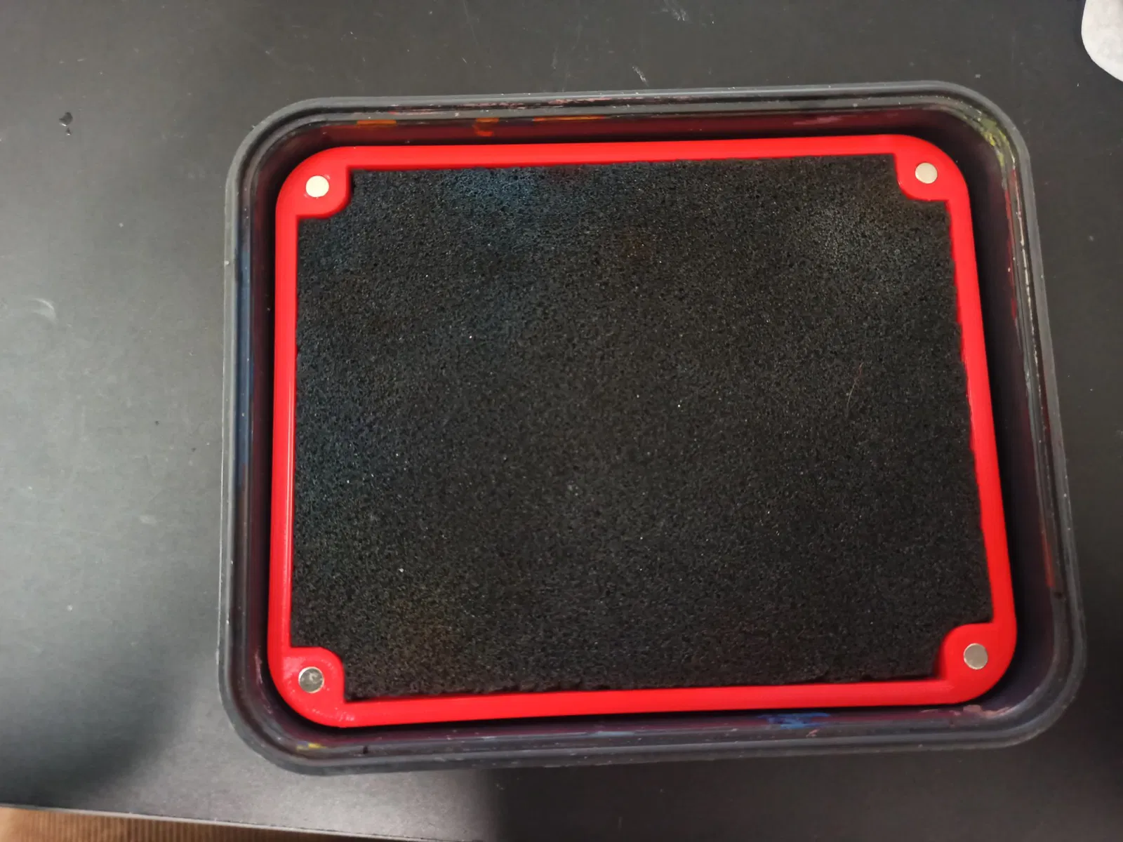 Nắp đậy dạng sandwich để giữ giấy AK Wet Palette cố định. Bạn cần cắt bọt biển và dán nam châm để giữ nắp chắc chắn. Có các rãnh để bạn tùy chỉnh vị trí dán nam châm.