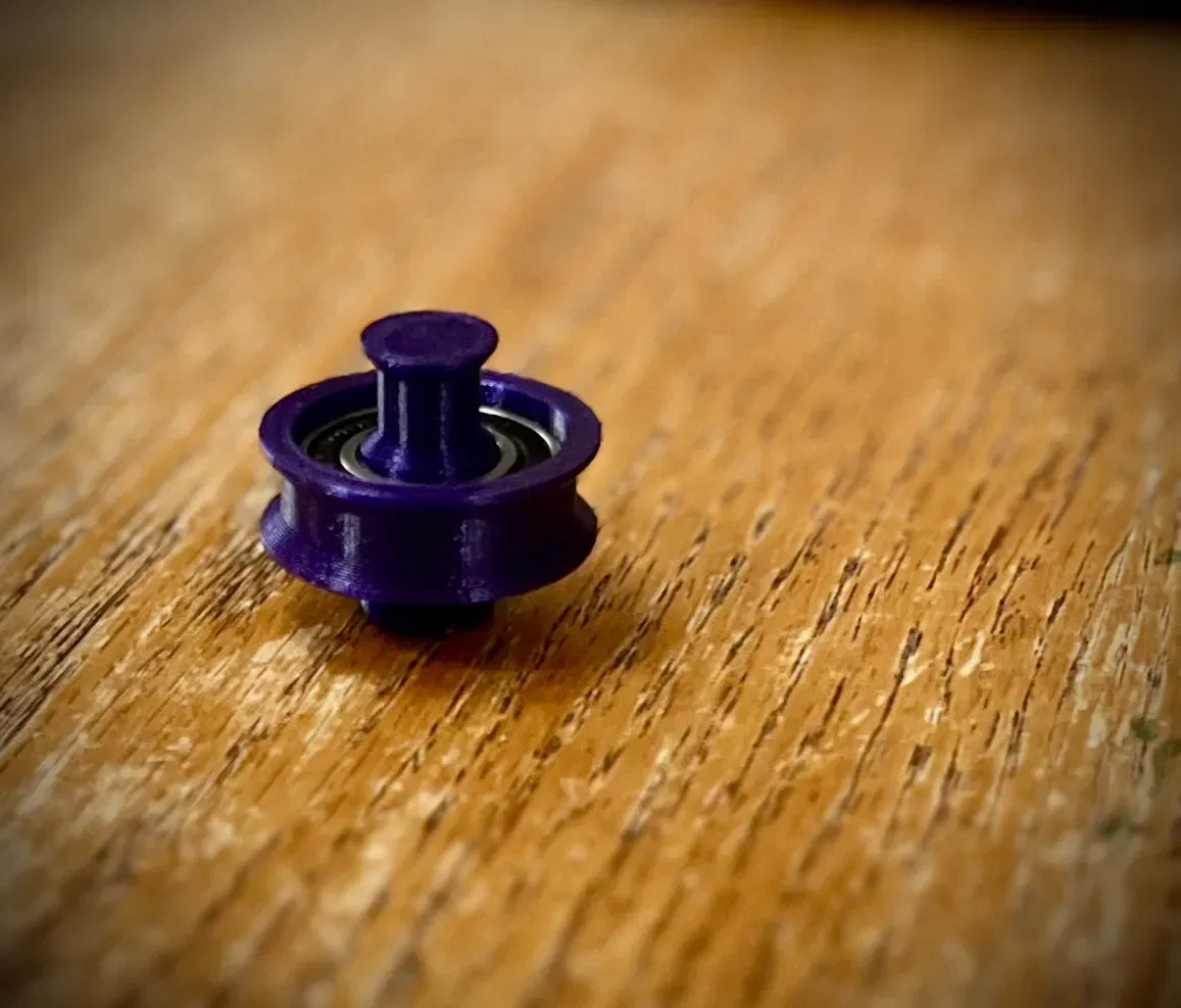 Bánh xe thay thế cho bộ phận giữ cuộn dây tóc, sử dụng bạc đạn 6901 để chạy mượt mà hơn, giải quyết vấn đề cuộn dây tóc nặng bị văng ra lúc ban đầu. Có thể cần chỉnh sửa kích thước in hoặc dùng keo để lắp bạc đạn vừa vặn.