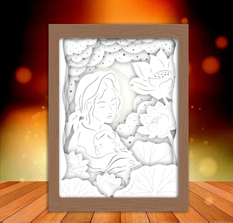 Mô hình đèn lồng "Mẹ Ôm Con" nhân Ngày Của Mẹ, thích hợp để in 3D. Tìm link mua đèn từ AliExpress và Amazon, file SVG trên Patreon và video hướng dẫn lắp ráp tại đây. Liên hệ qua email: [email protected].