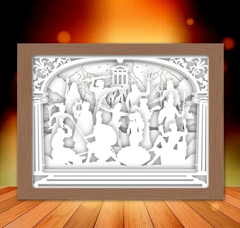 Trưng bày 12 vị thần Olympia với hộp đèn độc đáo này. Hoàn hảo cho những ai yêu thích thần thoại Hy Lạp và muốn thêm chút ánh sáng nghệ thuật vào không gian sống. Mua đèn hoặc file SVG hỗ trợ lắp ráp ngay hôm nay!
