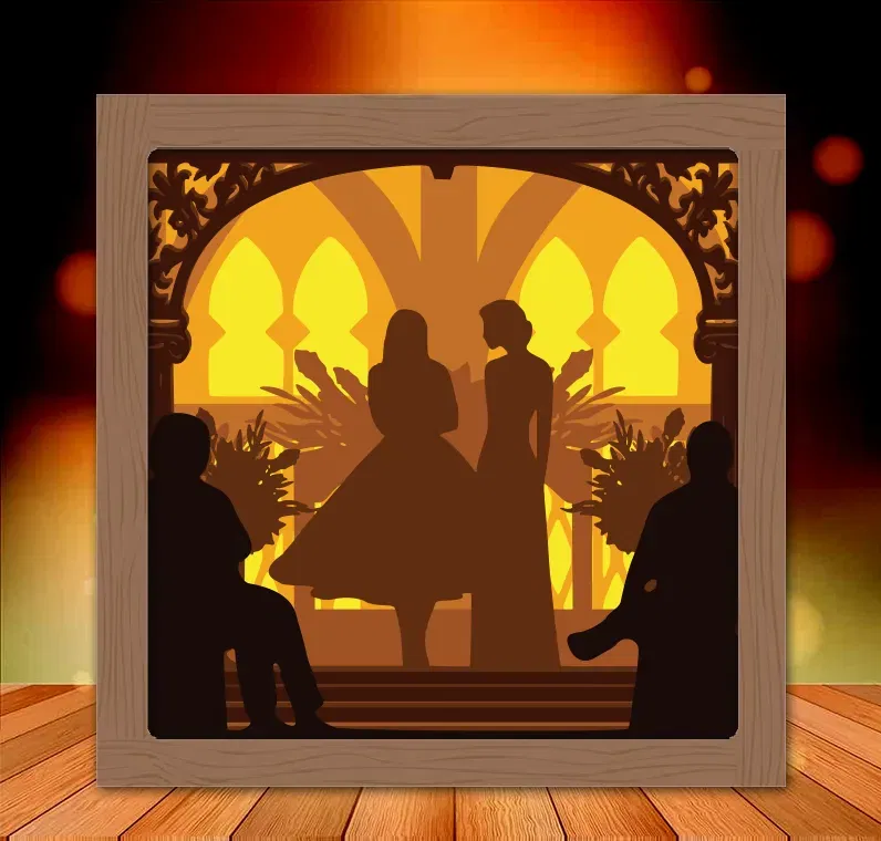 Hộp Đèn Cưới Mrs and Mrs 4 là một mẫu đèn trang trí độc đáo, thích hợp cho các cặp đôi. Bạn có thể mua đèn hoặc tìm file SVG trên Patreon của tác giả. Liên hệ qua email nếu cần hỗ trợ.