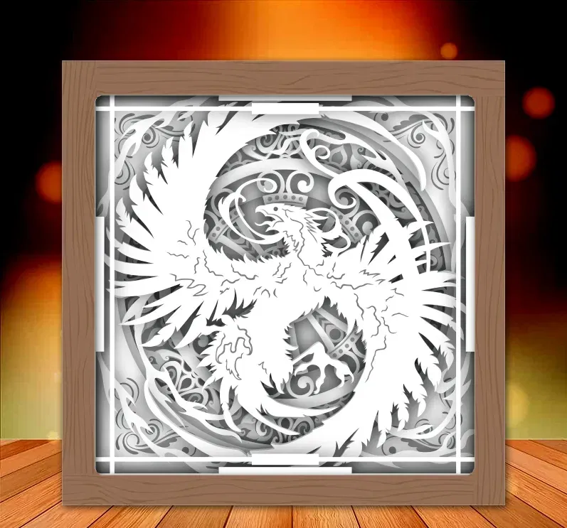 Hoàn thiện mô hình hộp đèn Phượng Hoàng Tái Sinh của bạn! Tìm link mua đèn, file SVG trên Patreon và video hướng dẫn lắp ráp chi tiết tại đây. Liên hệ qua email nếu cần hỗ trợ.