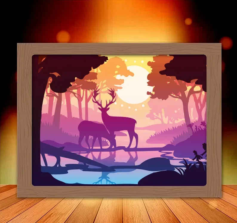 Chào mừng bạn đến với mẫu Đèn Hộp Rừng Cây Hươu Nai! Bạn có thể tìm mua đèn tại đây: https://s.click.aliexpress.com/e/_DE4xxNH. Ngoài ra, bạn có thể tìm file SVG trên Patreon của tôi tại https://www.patreon.com/tecnoculebras. Liên hệ qua email [email protected] nếu cần hỗ trợ nhé!