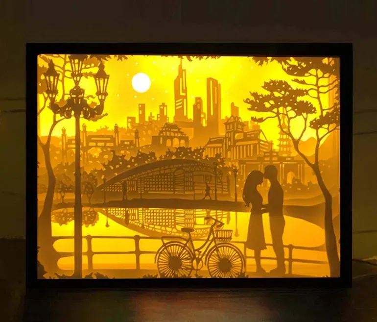 Valentine Trong Hộp Đèn Hồ là một mô hình 3D độc đáo, thích hợp để trang trí. Bạn có thể tìm mua đèn và các file SVG hỗ trợ trên Patreon. Xem video hướng dẫn lắp ráp chi tiết để hoàn thiện sản phẩm.