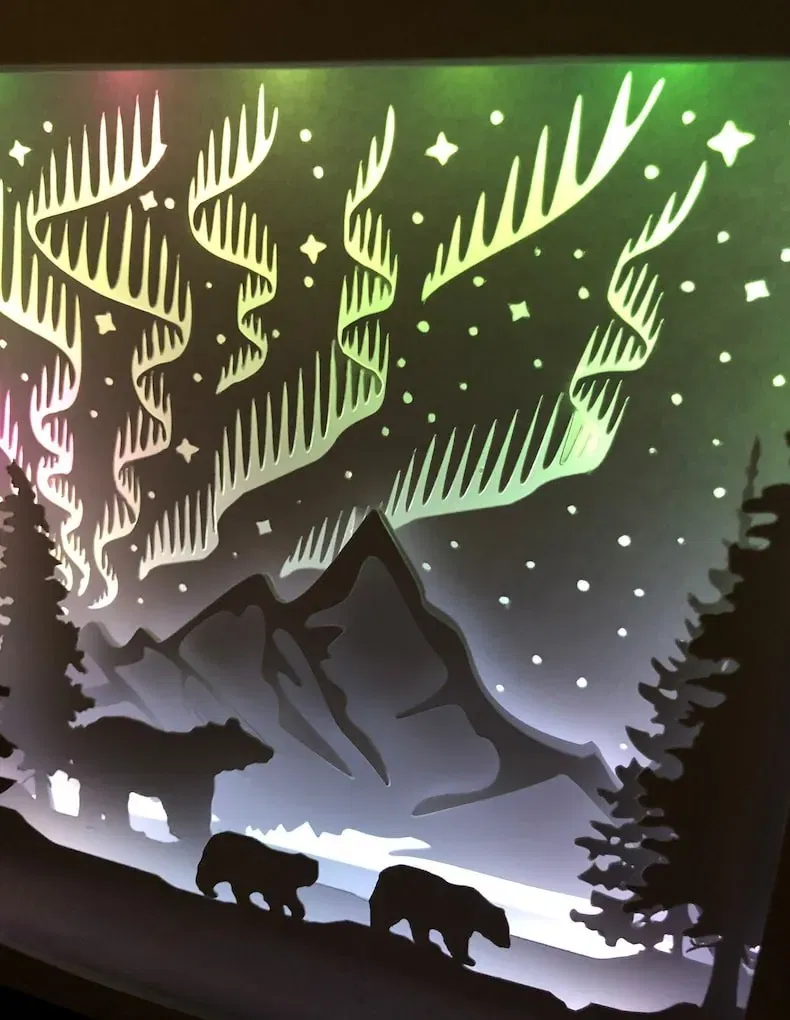 Mua đèn và các file SVG cho mô hình Hộp đèn Bắc Cực Quang và Gấu Bắc Cực trên Patreon. Video hướng dẫn lắp ráp cũng có sẵn. Liên hệ qua email để biết thêm chi tiết.