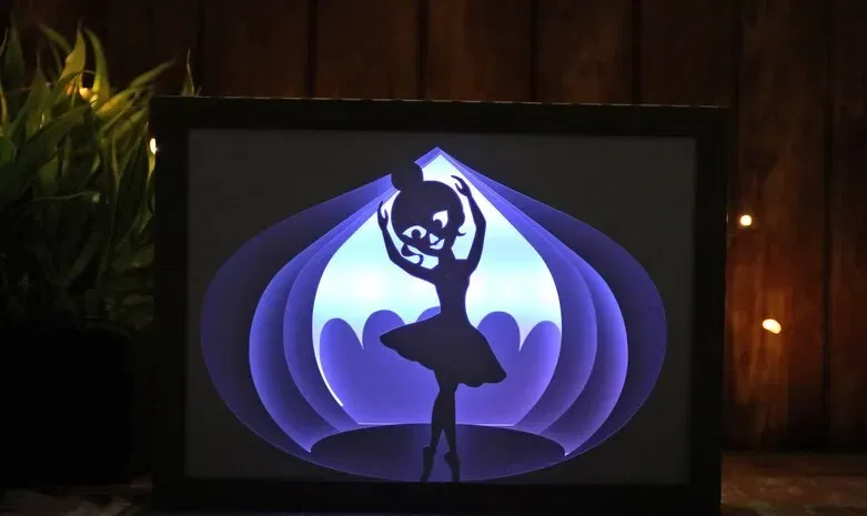Chia sẻ link mua đèn hộp múa ba lê dễ thương từ AliExpress và Amazon, cùng với file SVG trên Patreon. Có video hướng dẫn lắp ráp và email liên hệ để được hỗ trợ.
