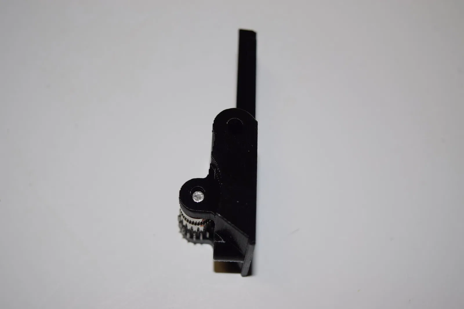 Cái lỗ trục cho bánh răng idler cứ bị lỏng hoài làm tui khó chịu. Tui đã làm nó chặt hơn, cần dùng lực mạnh hơn để lắp, giờ thì nó không còn bị trượt nữa. In với độ dày lớp 0.2, ưu tiên màu tối để đỡ bị ảnh hưởng bởi ánh sáng IR.